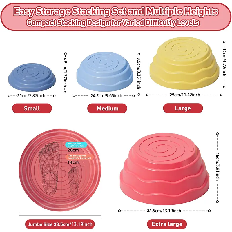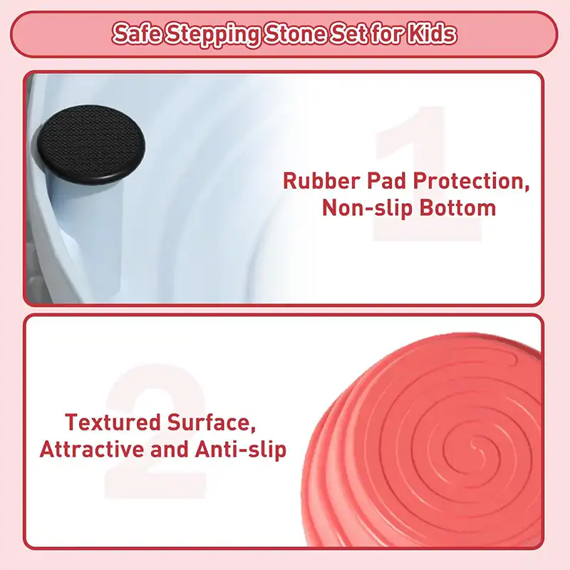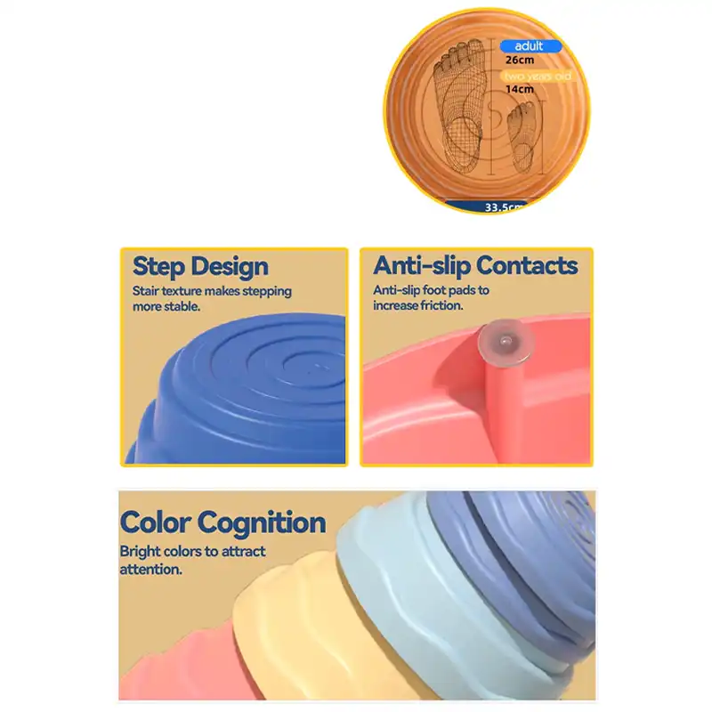 ایمنی محصول: اسباب بازی پله تعادلی از مواد پلاستیکی سخت، بادوام، غیر سمی ساخته شده است که به راحتی شکسته نمی شود و از نظر رنگ، برای کودکان در هر سنی بی خطر است و پوسته پوسته نمی شود. این پله ها دارای لبه های صاف و بدون تیزی است. این بلوک ها از مواد ایمن، محکم و بادوام ساخته شده است و به همین دلیل برای استفاده کودکان، راحت است. طراحی خوب این پله های تعادلی باعث می شود که خطری برای کودکان نداشته باشد. در زیر هر کدام از آنها 6 محفظه برای قرار گیری پایه تعبیه شده است که در سطوح مختلف لیز نخورد و برای بازی کودکان ایمن باشند. این اسباب بازی پله حسی تعادلی بر روی همه سطوح ها قابل استفادست