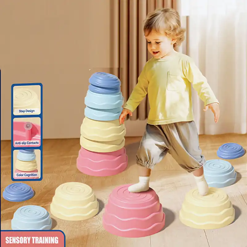 اسباب بازی پله تعادلی 6 عددی ضد لغزش میتوانند توانایی تعادل، توانایی تفکر منطقی، تمرکز، توانایی کاوش، تخیل، خلاقیت و... را در کودکان تقویت کنند. اسباببازی پله های تعادلی از رنگهای روشن پاستلی از جنس پلی پروپیلن PP و با کیفیت ساخته میشود. اسباب بازی پله تعادلی 6 عددی رنگی را در کنار هم بیچنید و مهارت های کودکتان را تقویت کنید. اسباب بازی پله تعادلی 6 عددی شامل 7 پله تعادلی رنگی + 48 عدد پایه ضد لغزش است که در مهد کودک و خانه بازی ها هم بسیار پر طرفدار خواهد بود. رویه ضد لغزش پله های تعادلی، حس عمقی و هماهنگی اندام کودکان را پرورش می دهد، انعطاف پذیری دست ها و پاها را تقویت می کند و به کودکان این امکان را می دهد که تجربه بهتری در اسباب بازی های حسی دوران کودکی داشته باشند. اسباب بازی های تجهیزات ورزشی یک هدیه خوب برای کودکان است.