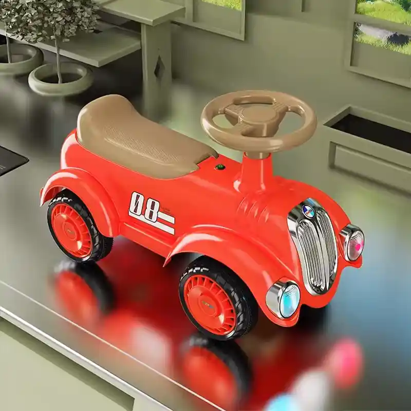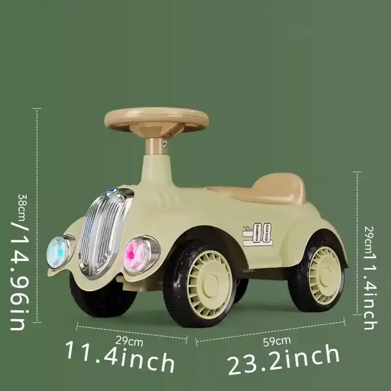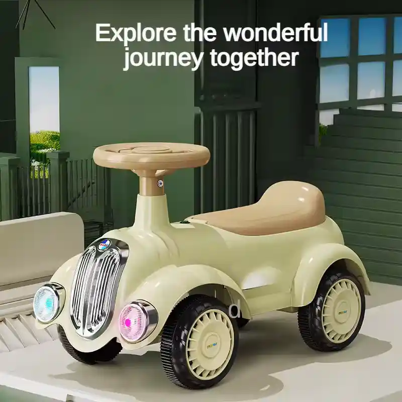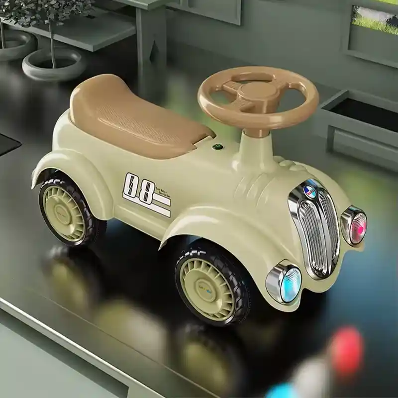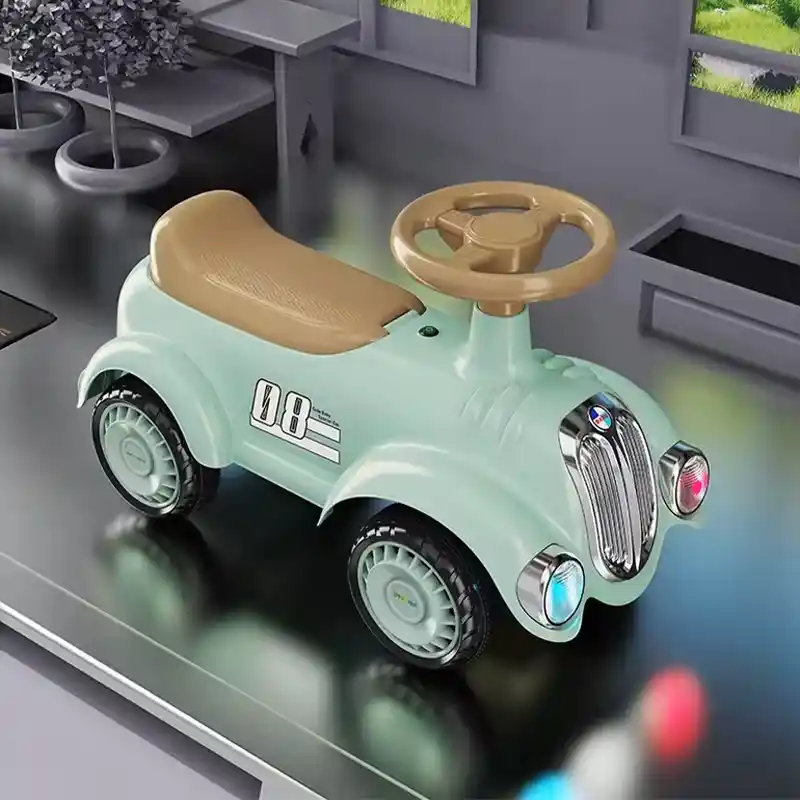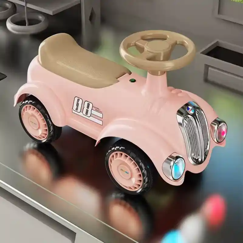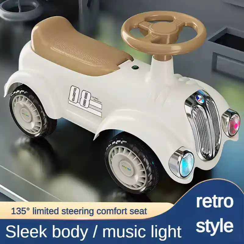 ماشین پایی کودک دقیقا مثل یک ماشین کلاسیک واقعی طراحی شده است. ماشین پایی کودک دارای جلوه های نوری و صوتی و قابلیت پخش موزیک کودکانه را دارد و برای کودکان 1 سال تا 4 سال مناسب میباشد و تحمل وزن 15 کیلوگرم دارد. این ماشین از جنس پلاستیک محکم و با دوام است و دارای تایر با روکش پلاستیکی است.