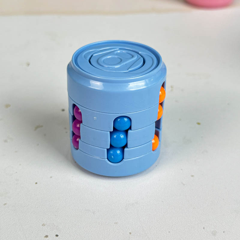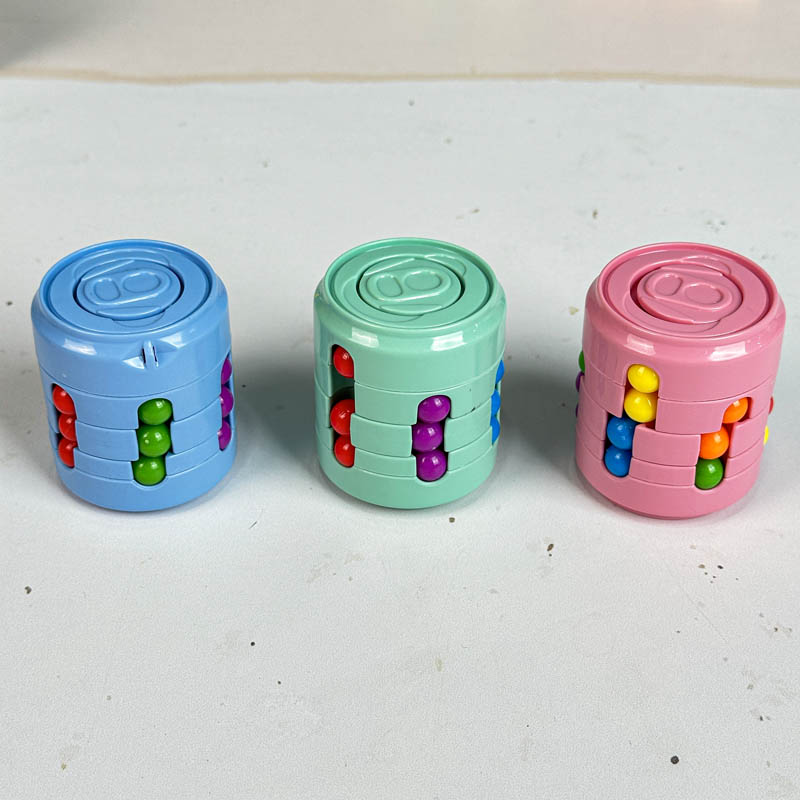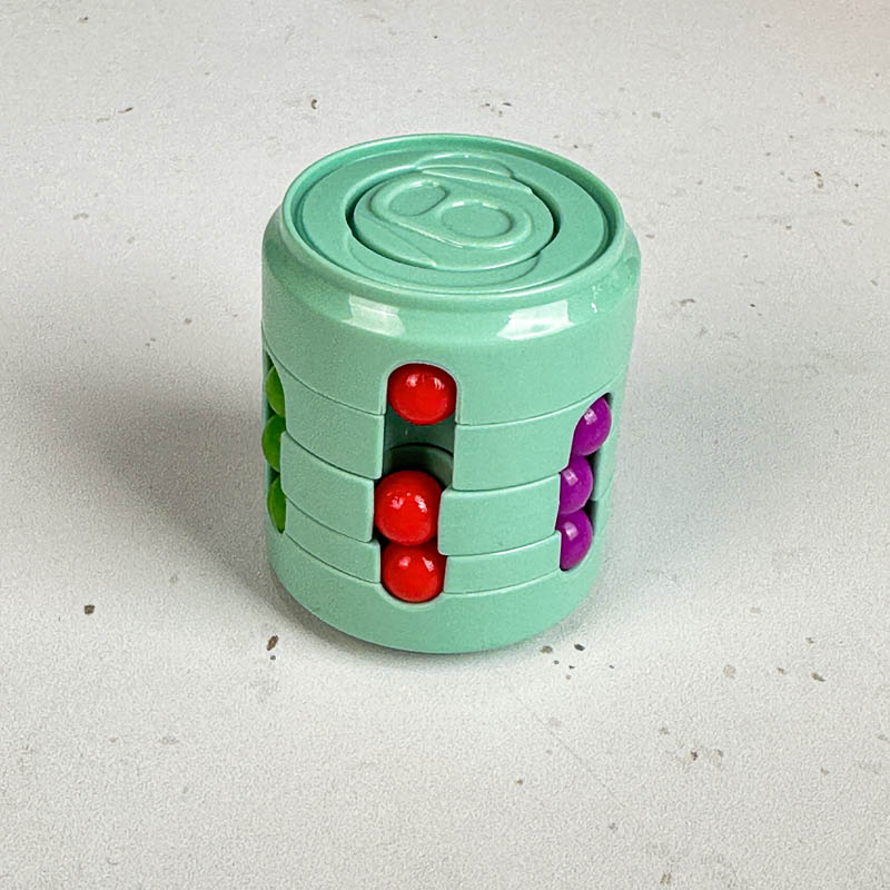 این فیجت بامزه شبیه قوطی نوشابه میمونه و سه تا اسپینر داره که میشه اونها رو به صورت مجزا و یا با هم دیگه میتونید بچرخونید. تازه فیجت شما علاوه بر اسپینره، پازل هم هست و برای حل کردن اون کافیه صفحهها رو چرخونده و با کمک گرفتن از حفرهی خالی بالایی، دونههای یک رنگ رو کنار هم قرار بدید تا پازلتون کامل بشه. شما هر سنی که داشته باشید با یه بار بازی کردن با این فیجت بامزه عاشقش میشید فقط کافیه اون رو دستتون بگیرید و با انگشتانتون صفحهها رو به چرخش در بیارید. همچنین با بندی که همراه فیجتتون وجود داره میتونید اون رو به راحتی همهجا با خودتون ببرید و آویزونش کنید.