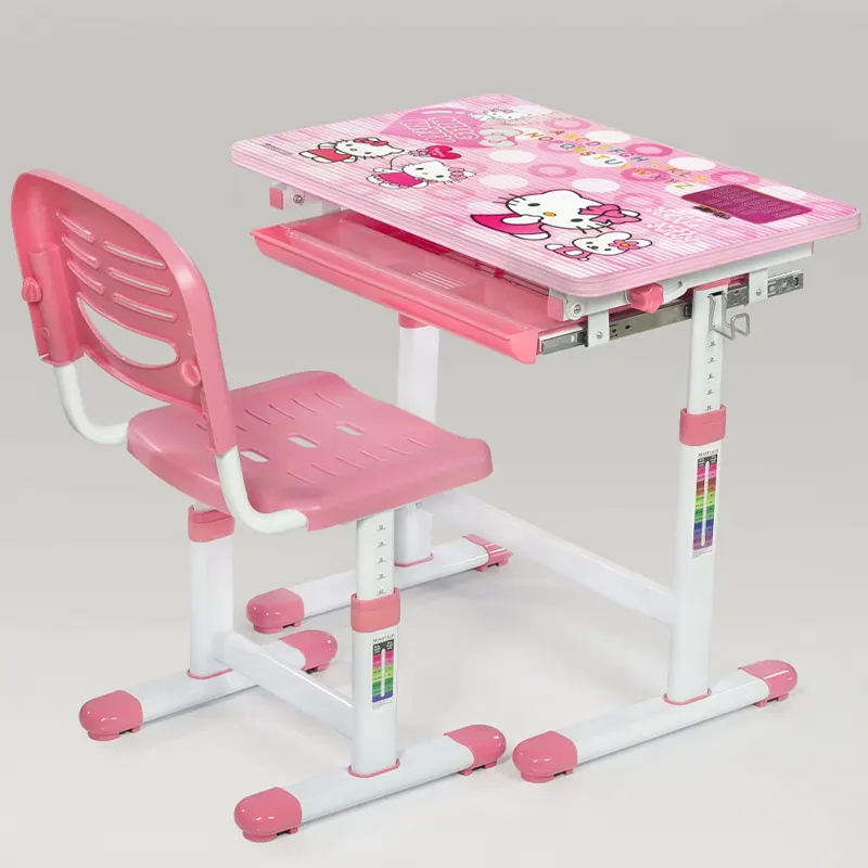 میز تحریر کودک با بدنه محکم و نصب آسان و کیفیت خوب و بدون گوشههای تیز جهت ایمنی کودک، یکی از لوازم ضروری برای کودکان از 2 تا 15 سال میباشد. میتوان متناسب با روحیه و دکوراسیون اتاق کودک، میز تحریر او را انتخاب نمود. با استفاده از میز تحریر، کودک میتواند به صورت صحیح و درست بنشیند و تکالیف یا نقاشی هایش را بکشد این میز و صندلی کودک قابلیت تنظیم ارتفاع دارد در کنار این میز و صندلی برچسب راهنمای تنظیم ارتفاع قرار دارد که نشان میدهد با هر قدی ارتفاع میز و صندلی باید چقدر باشد. سطح رویه میز از چوب با کیفیت میباشد و پایه ها از آهن رنگ پایه های میز و صندلی از نوع الکترو استاتیک ساخته میشود و این نوع رنگ ها ثابت بوده و بدون ریزش است. لازم به ذکر است تمامی لبه های میز با نوارهایی از گرانول نرم درجه یک پوشانده شده تا از آسیب دیدگی و خش دار شدن لبهها جلوگیری شود و زیبایی میز حفظ گردد. این محصول دارای صفحهی ضدخش و ضد آب میباشد که به واسطهی روکش سلفونی پوشیده شده است. این میز دارای طراحی بسیار کاربردی است تا کودک بتواند علاوه بر این که تکالیفش را انجام دهد وسایل و لوازم تحریرش را روی آن قرار دهد و به آنها نظم دهد رویه این میز تحریر مشابه تخته وایت برد است به همین دلیل سریع تمیز میشود. همچنین صفحه میز بالا می آید و درون میز ارگنایزر کشویی قرار دارد که کودک میتواند کتاب و لوازم تحریرش را درون آن قرار دهد.این میز تحریر کودک از جنس آهن ساخته شده و به دلیل نداشتن گوشههای تیز جهت استفادهی کودکان بسیار ایمن است.