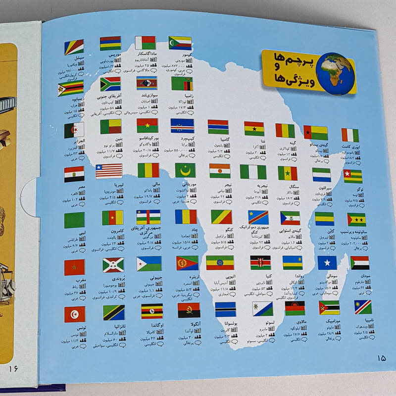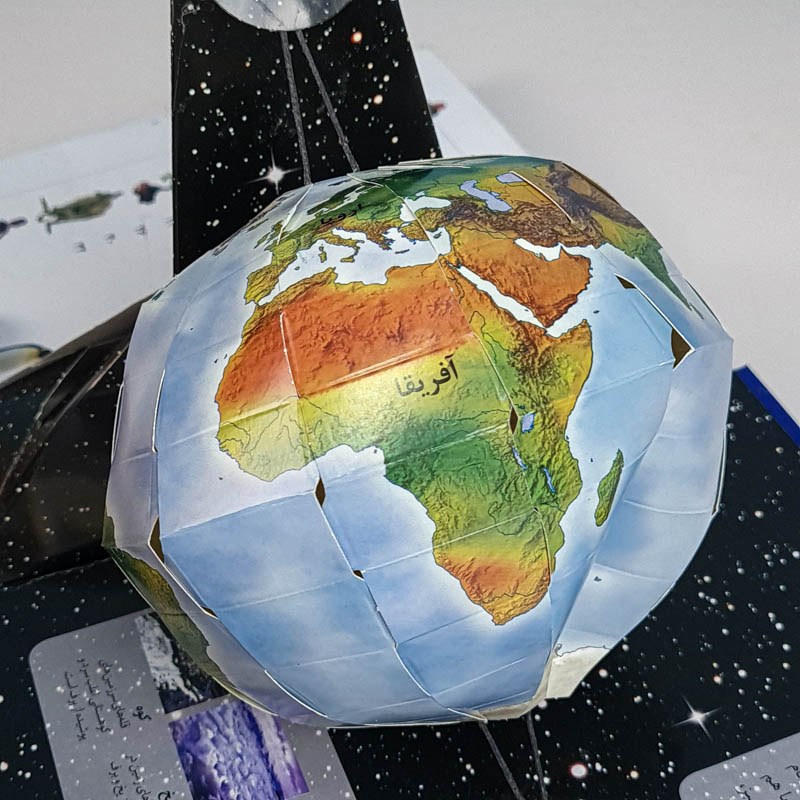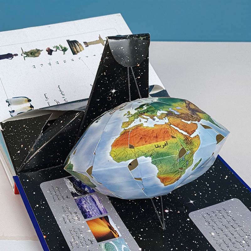 - تصاویر سهبعدی (Pop-Up 3D): قارهها، اقیانوسها و کشورها بهصورت برجسته نمایش داده میشوند.