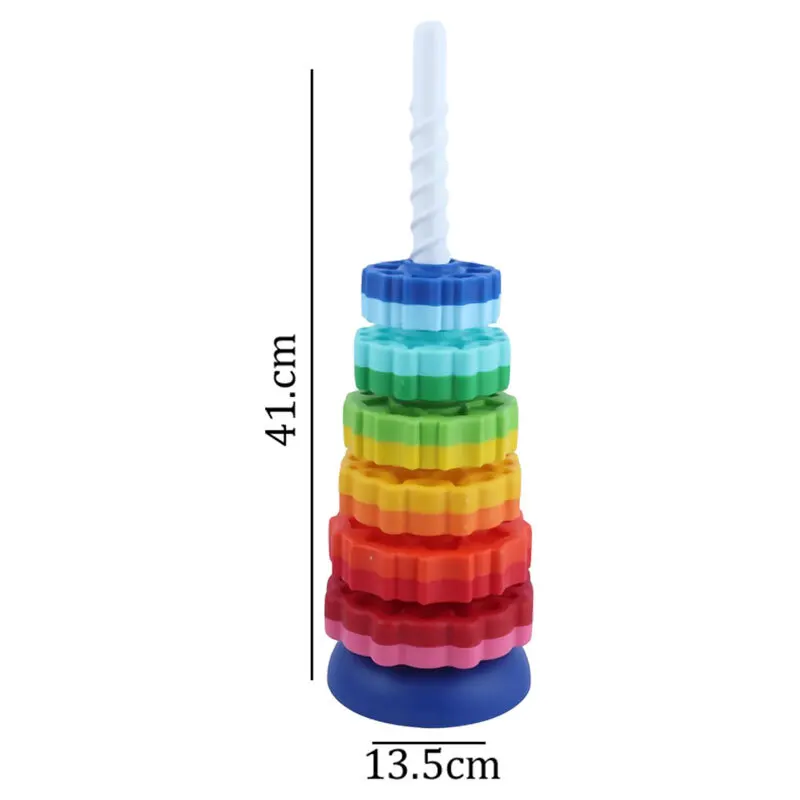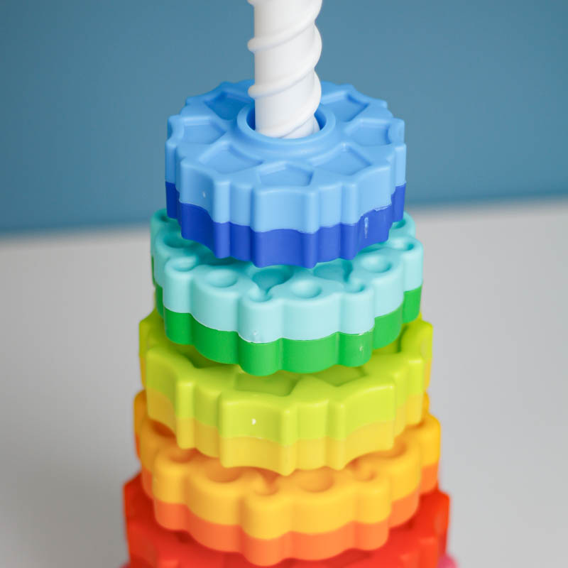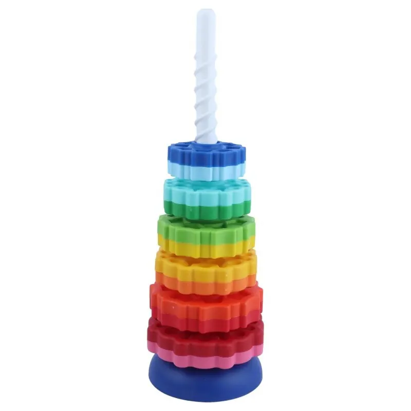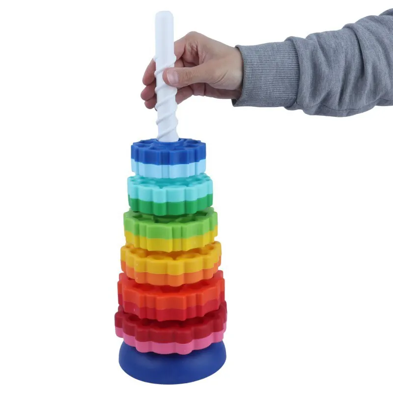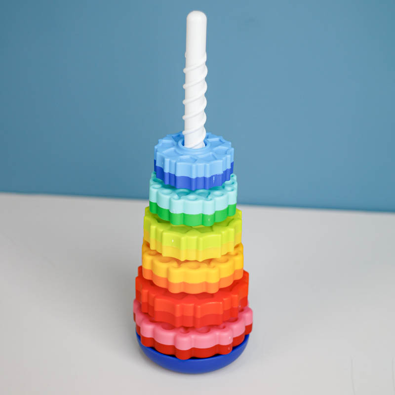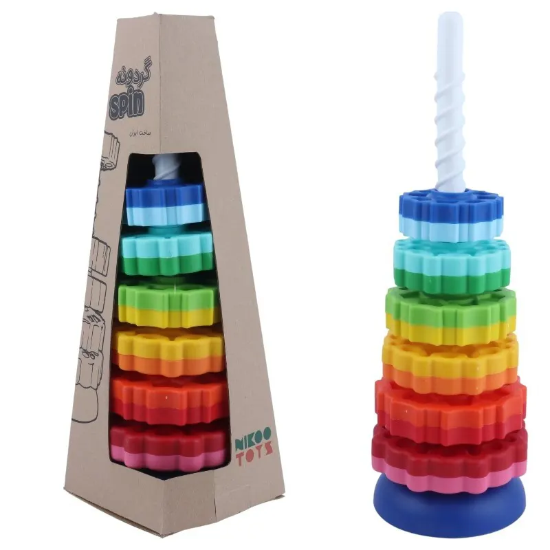 اسباب بازی گردونه برج هوش رنگین کمانی یا اسپینی و یا برج چرخ دنده از سری بازی های ساختنی چیدنی است که شامل 6 حلقه رنگی، پایه و میله پیچ دار مناسب جهت پرورش مهارت های حرکتی، پرورش ذهن، تقویت فکر، آشنایی با رنگ ها ، آشنایی با نحوه چیدمان برای خردسالان است.