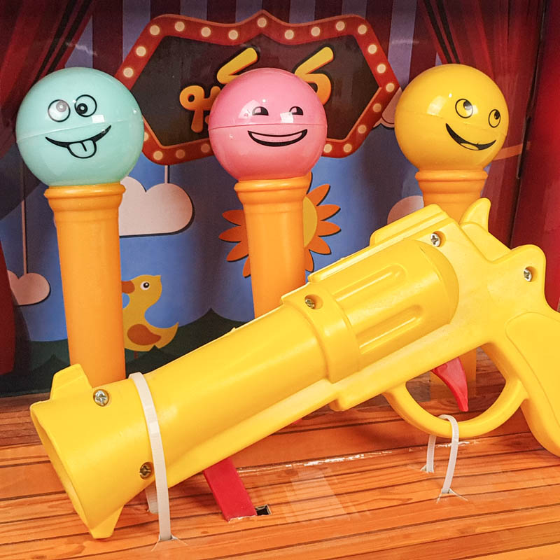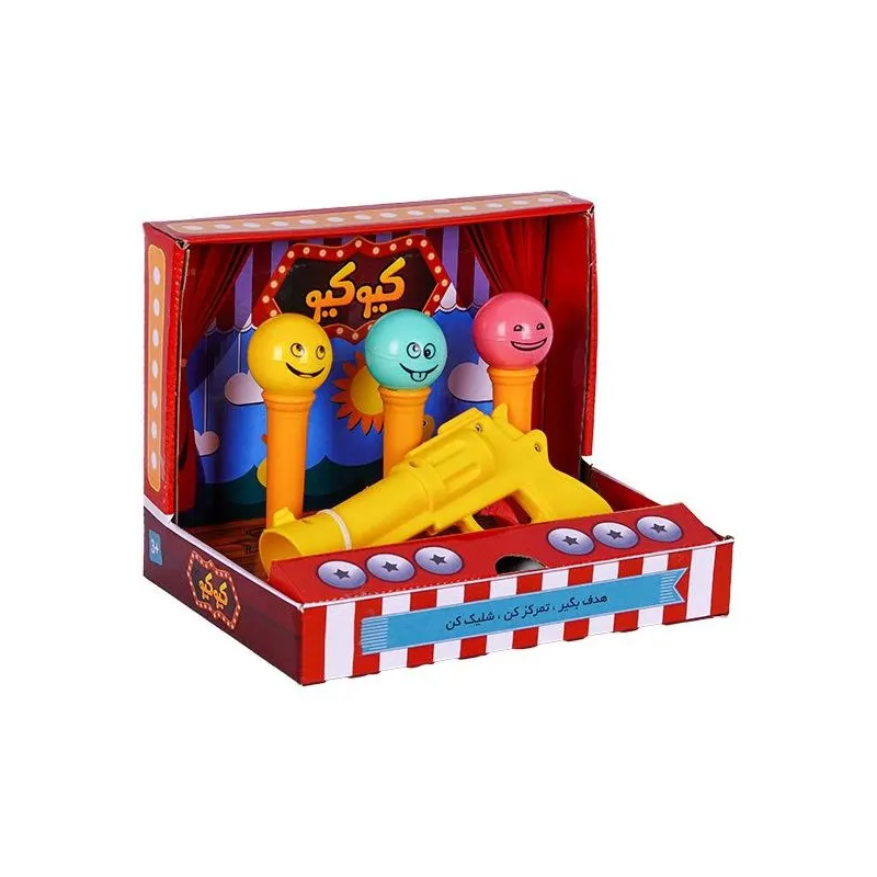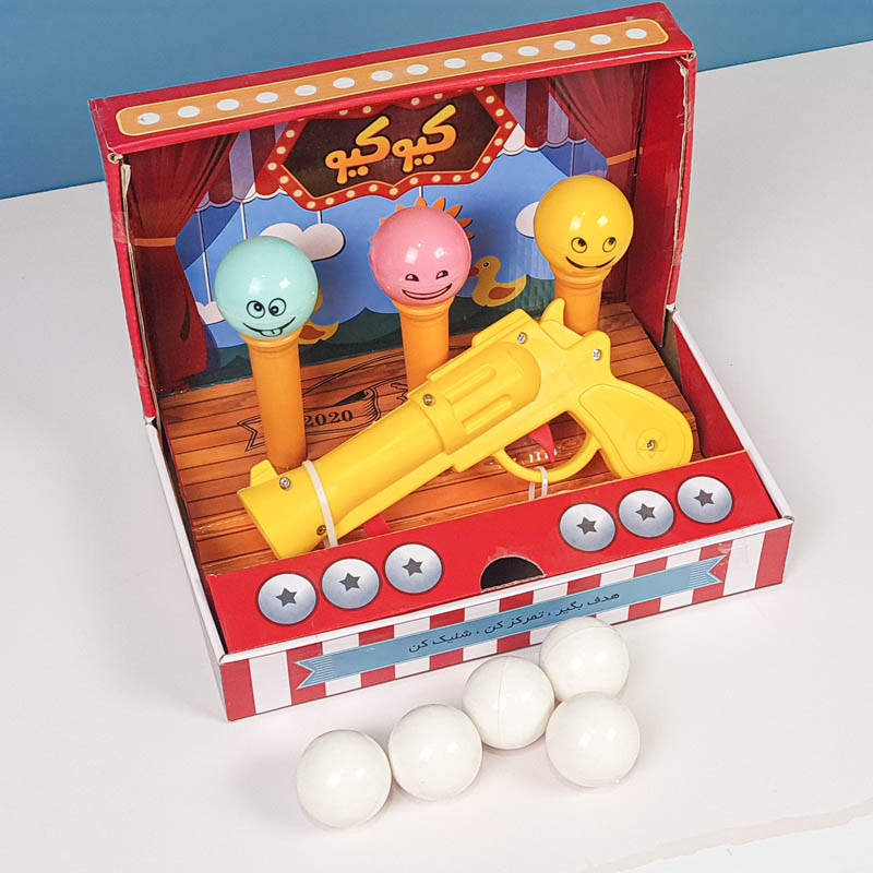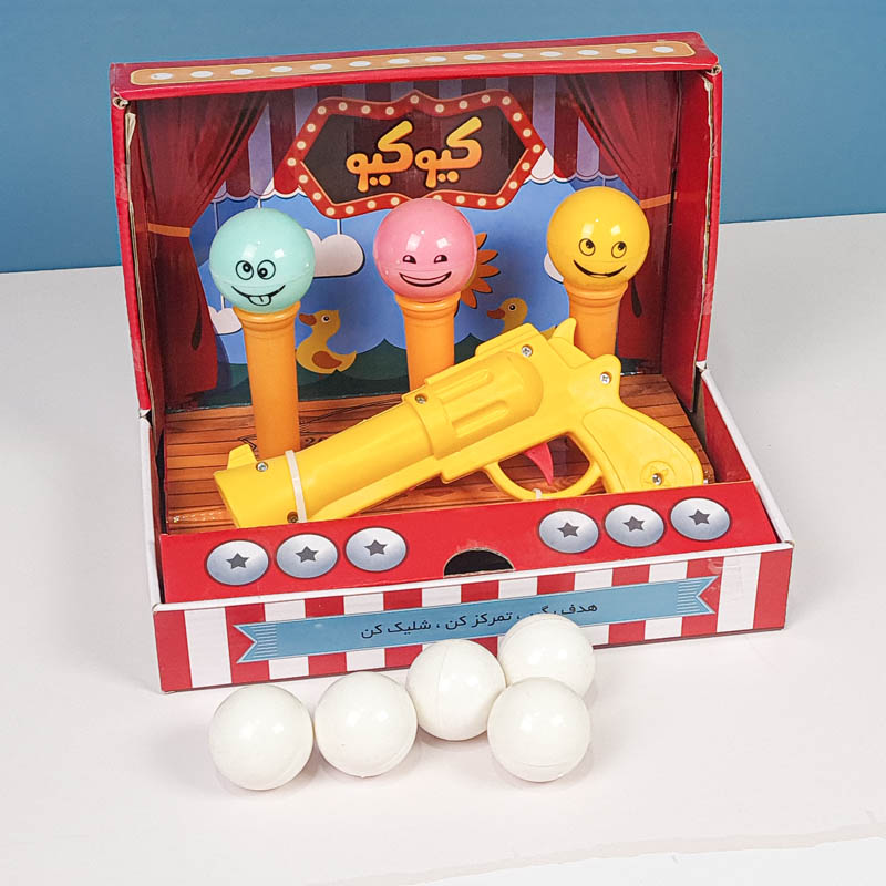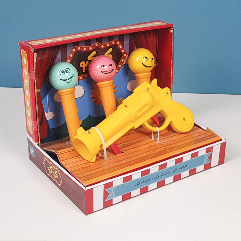 | اقلام همراه | 3 عدد توپ رنگی، 3 عدد سیبل، 4 عدد تیر توپی، یک تفنگ برای تیر اندازی |