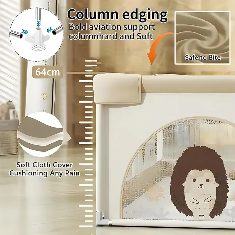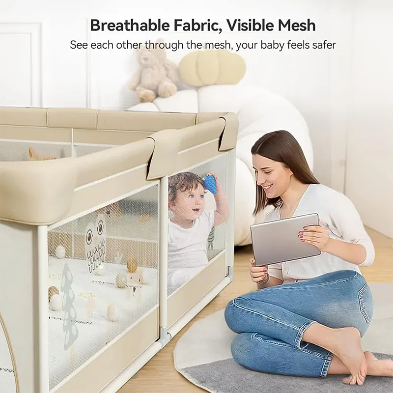 روکش پارچه ای دارای طرح چاپ شده کارتونی با کیفیت میباشد که سعی شده عکس های کالا بدون ادیت و غیر ژورنالی استفاده شود تا کیفیت محصول بخوبی مشخص شود. این پارک بازی محصول کارخانه معتبر BABY PLAYPEN است که سازنده و تولید کننده انواع تجهیزات کودک خانگی و مهد کودک است. این شرکت به خاطر صادرات محصولاتش به کشور های اروپایی و آمریکا گواهی استاندارد CPC از کشور امریکا را دریافت کرده است تا مشکلی برای فروش و کیفیت در کشور های دیگر نداشته باشد.