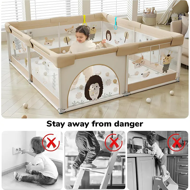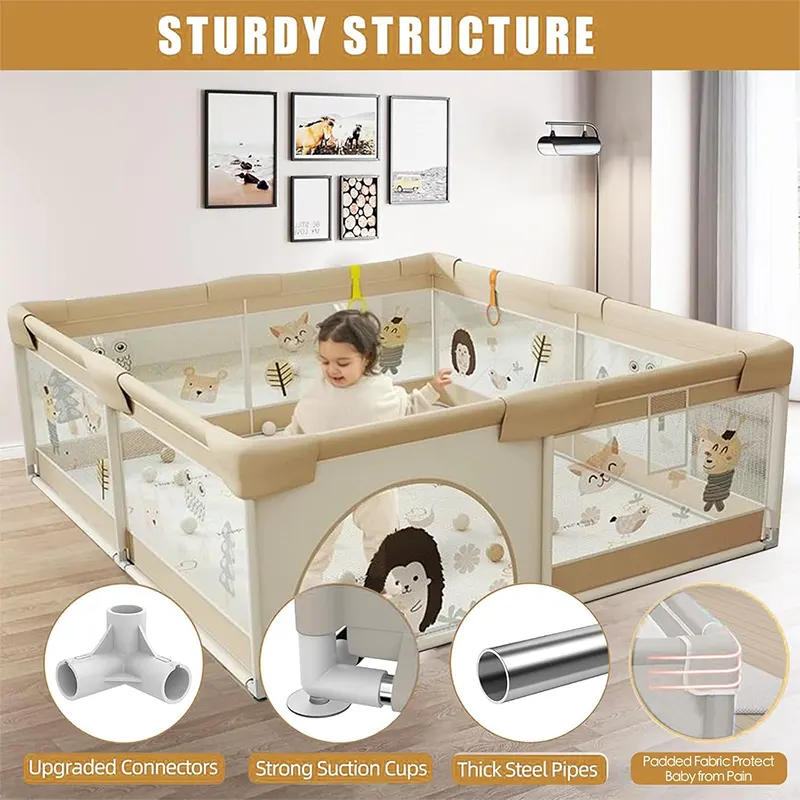 استخر توپ محیطی امن برای بازی کودکان از 6 ماه تا 5 سال است. با خرید استخر توپ و پارک حفاظ کودک پارچه ای رنگ بژ سایز 200x200 فضای تقریبی 3.6 متر را برای بازی در اختیار کودک قرار میدهد. این استخر توپ از جنس پارچه ای است و دارای بست های پلاستیکی و فلزی بسیار با دوام است. همچنین با پر کردن این استخر توپ از توپ های رنگی پلاستیکی یک فضای بازی مهیج برای کودکان ایجاد می شود. کودکان نوپا درهنگام حرکت مدام به اطراف برخورد میکنند، برای ایجاد محیطی امن، پیشنهاد ما پارک حفاظ کودک یا همان استخر توپ است. برای بازی کافی است توپ رنگی را داخل پارک بازی کودک قرار دهید و شاهد هیجان کودک باشید. این استخر توپ، ابعاد 200*200*65 سانتیمتر را به شما میدهد. استخر توپ و پارک حفاظ کودک پارچه ای رنگ بژ جدیدترین محصول وارداتی پارک بازی کودک به همراه مقاومت بسیار بالا بدنه و امنیت کامل برای کودک است. حفاظ های اطراف از جنس توری بسیار مقاوم pvc کار شده و کودک براحتی میتواند فضای بیرون را رویت کند و اضطراب جدایی نگیرد. میله های بدنه دارای روکش فوم ضد ضربه میباشد تا در کنار مقاومت بدنه از نرمی بسیار خوبی برخوردار باشد اتصالات مقاوم بهمراه نصب آسان و قابل جابجایی است.