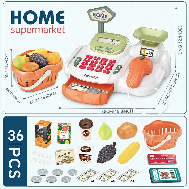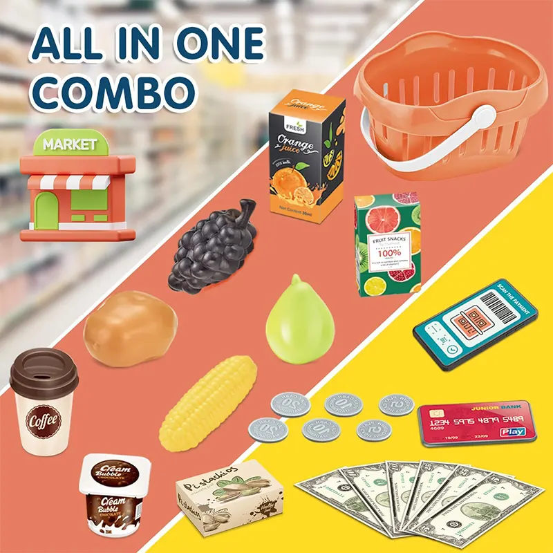 کودکان عاشق خرید و فروش کالا هستند و این صندوق فروشگاهی با سبد خرید این امکان را به کودک میدهد تا علاوه بر بازی با عملیات ریاضی و جمع و تفریق نیز آشنا شود. صندوق فروشگاهی اسباب بازی به بچه ها اجازه میده تا توی دنیای خیالی خودشون خرید و فروش رو تجربه کنن.