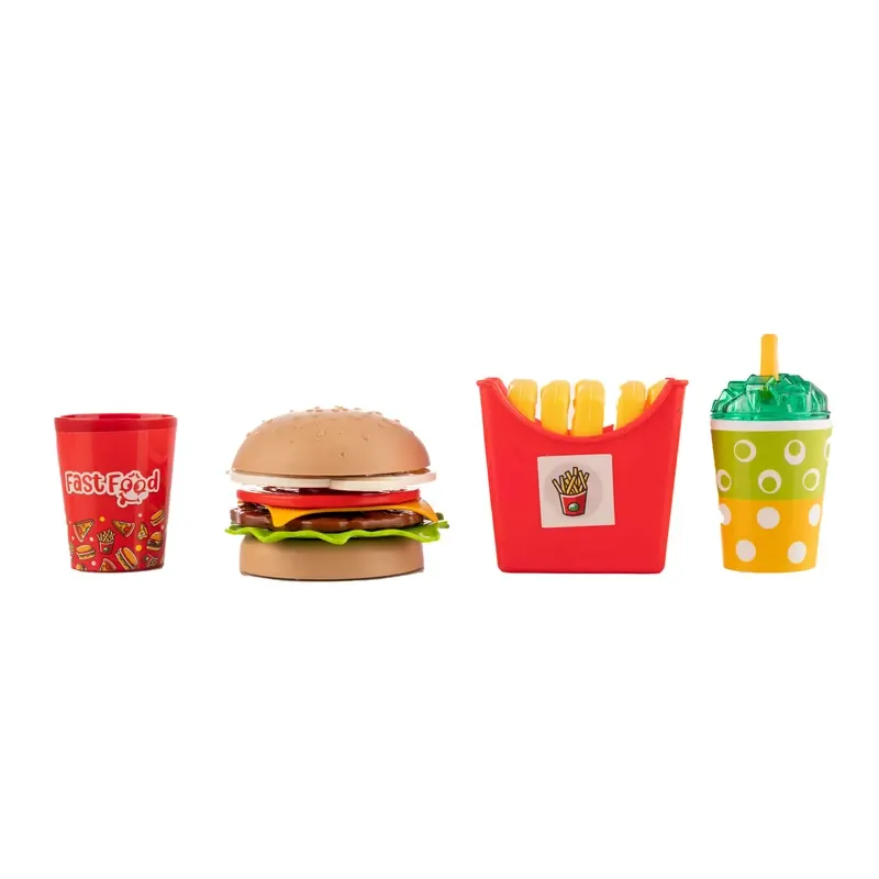 اگر به دنبال خرید اسباب بازی کودک برای بالای 3 سال هستید، این ست اسباب بازی خوراکی جذاب را حتما جزو انتخاب های خود قرار دهید. خرید اسباب بازی فست فود برای کودکان موجب تقویت تجسم خلاقانه، حل مسئله، نقش بازی و ... در آن ها میشود.