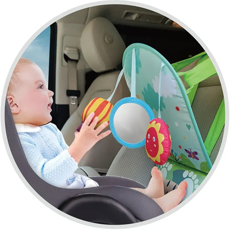 اسباب بازی سفر هانگر Huanger یک اسباب بازی جذاب برای هر نوزاد کوچولوی 18 ماه به بالاست. کافیه این صفحه بازی رو به پشت صندلی ماشین و یا کالسکه و سه چرخه کودک و یا تخت خواب کودک نصب کنید تا ساعتها سرگرمی رو برای کودک مهیا کنید. این صفحه بازی یک صفحه پلاستیکی با روکش پارچه ای با طرح کودکانه دارد. در بالای این صفحه بازی یک آینه برای دقت و توجه بیشتر کودک و دو عروسک پولیشی بامزه قرار دارد که علاوه بر سرگرمی و بازی برای تقویت حواس و مهارت کودک عالیست. با این اسباب بازی سفر هانگر Huanger کودک می تواند ساعت ها با آن سرگرم شود و لذت ببرد. این اسباب بازی برای سن بالای 18 ماه یک هدیه تولد فوق العادست.