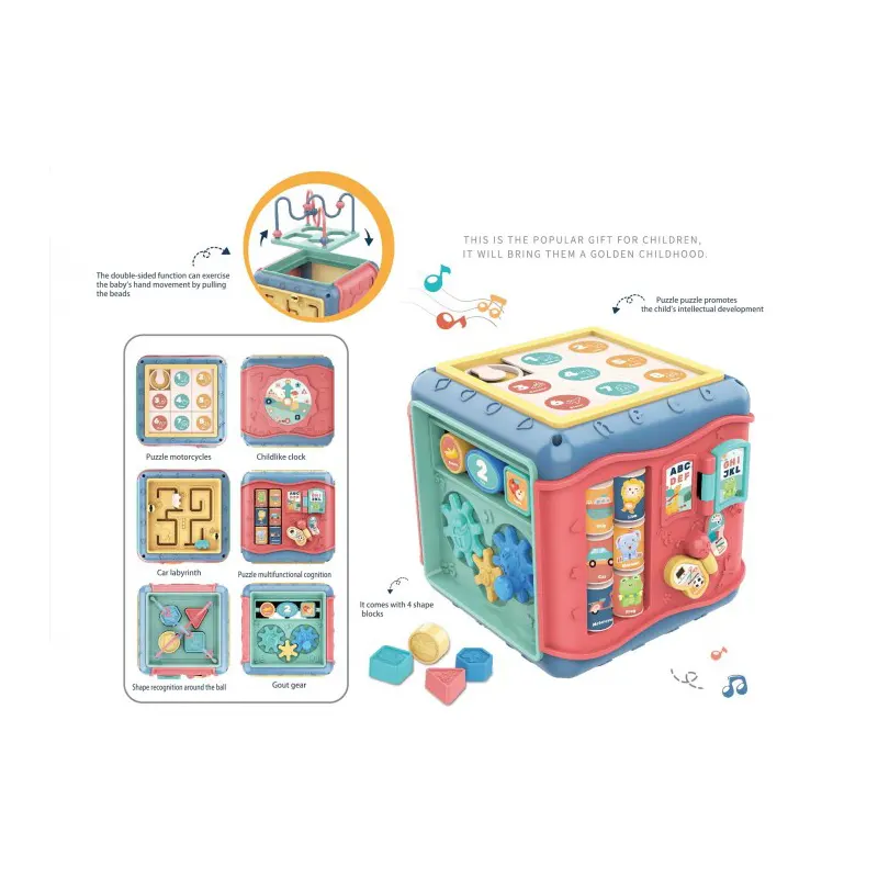 اسباب بازی مکعب هوش به سرعت توجه بچه ها را به خود جلب می کند و در طول زمان بازی، سرگرمی بیشتری را برای آنها به ارمغان می آورد. هر سمت از این مکعب دارای بازی هایی هست که موجب تقویت هوش، مهارت های ذهنی و فیزیکی بچه ها میشه. بازی هایی مثل ماز، ساعت، جاگذاری اشکال، چرخ دنده، باکس موسیقی، اسباب بازی چرخشی و... این اسباب بازی رو به یکی از جذاب ترین سرگرمی های بچه ها تبدیل کرده. مکعب هوش کودک یک اسباب بازی با چند بازی است تا کودک شما بتواند آموزش بیشتری ببیند. مکعب هوش چند منظوره به نوزادان و کودکان نوپا این امکان را می دهد که برای مدت طولانی با خود مشغول بازی شوند. همچنین این مکعب هوش با سطوح صاف، طراحی لبههای گرد و مقاومت در برابر ضربه قوی است و ساخته شده از پلاستیک ABS با کیفیت بالا و مواد سازگار با محیط زیست میباشد که غیر سمی، بدون BPA، بدون بو است.