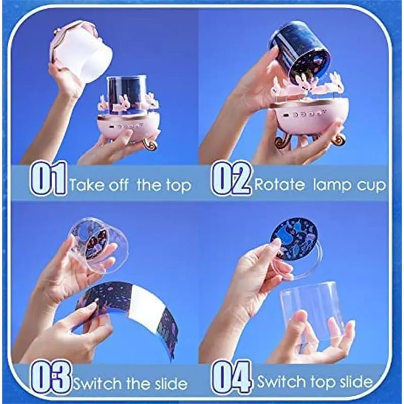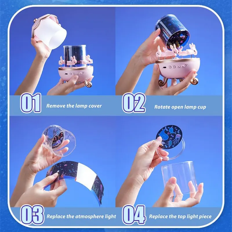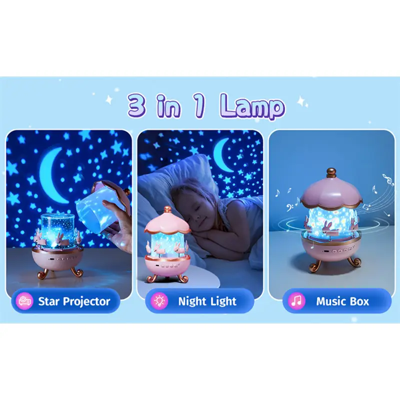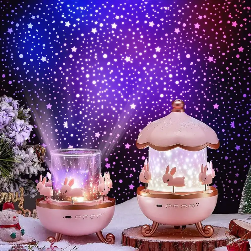 - طراحی چند منظوره: ترکیبی از یک چرخ و فلک با پخش موزیک از طریق گوشی، چراغ خواب و پروژکتور ستارهای با خرگوشهای چرخان دوستداشتنی و 6 فیلم با تم مختلف برای نمایش تصاویر