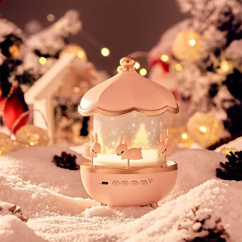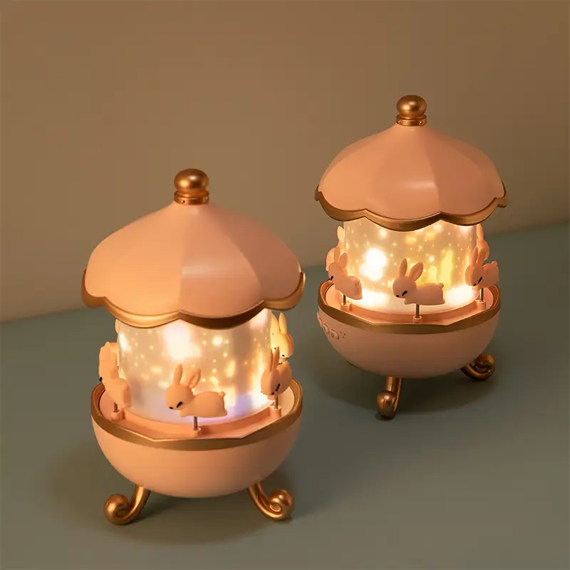 چراغ خواب کودک مدل کاروسل موزیکال طرح چرخ و فلک خرگوش کد WHE11