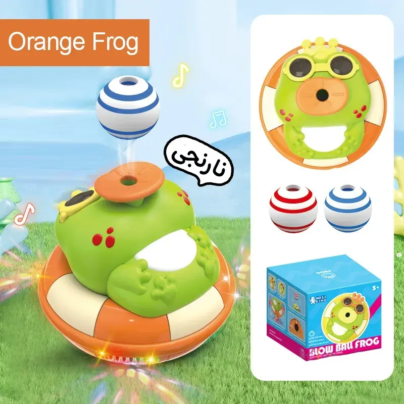 اسباب بازی موزیکال قورباغه و توپ فوتی برای گروه سنی 3 سال به بالا است. این قورباغه توپ فوت کن علاوه بر موسیقی و که داره میتونه راه بره و بچرخه و در حین حرکت توپ رو فوت کنه و ساعت ها کوچولوها رو سرگرم کنه. این قورباغه موزیکال با 3 عدد باطری قلمی کار میکند. جنس این قورباغه موزیکال از پلاستیک درجه یک ساخته شده و برای بچه های بالای 3 سال می تونه یک هدیه عالی باشه. این ربات موزیکال هم به عنوان اسباب بازی پسرانه و هم اسباب بازی دخترانه محبوبه. اسباب بازی قورباغه موزیکال یک قورباقه بامزه و یک اسباب بازی هیجان انگیز میباشد که روی یک تیوپ نارنجی و زرد خوابیده و میتواند توپ را به هوا فوت کند. با استفاده از 3 عدد باتری قلمی که به آن متصل میشود شروع به حرکت، پخش موزیک و راه رفتن میکند و میتواند کودکان را ساعت ها سرگرم نماید. این قورباغه 2 عدد توپ فومی دارد که با قرار دادن توپ در راستای دهان قورباغه آن را روی هوا نگه میدارد. این قورباغه هنگام چرخیدن و موزیک خوندن توپ را فوت میکند که جذابیت را برای کودکان دو چندان میکند. تمامی لبه های این اسباب بازی کودکانه موزیکال گرد و این است خطری برای کودک ندارد.