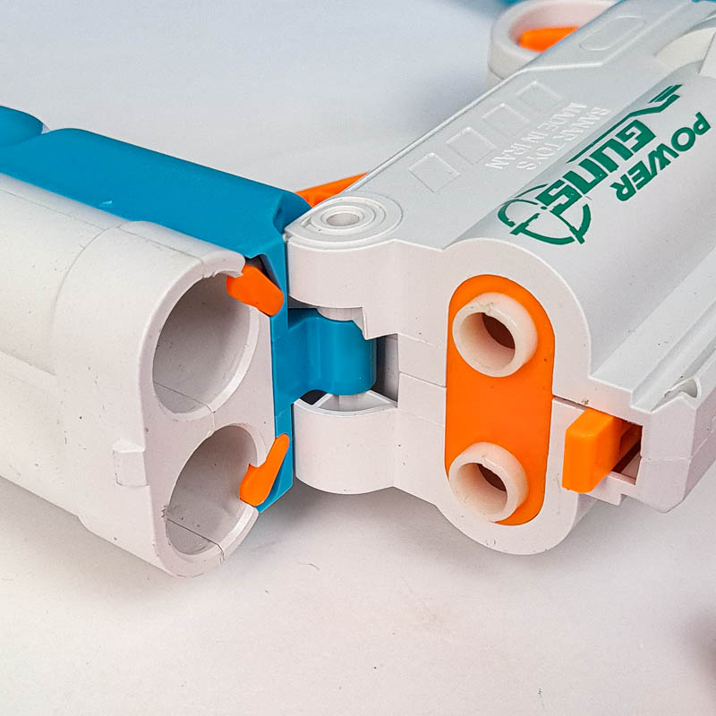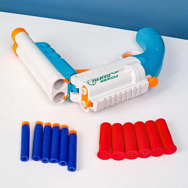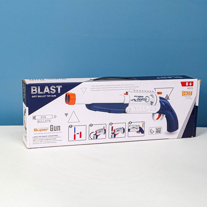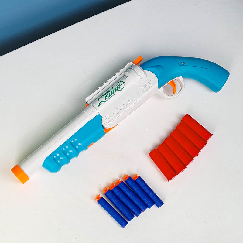 تفنگ شاتگان پوکه پران SUPER GUN قابلیت پرتا تیر در برد 8 متر را دارد. ابتدا تفنگ را با کمک اهرم بالایی که دارد باز کنید تیر ها را درون پوکه قرار دهید و با قرار دادن پوکه ها در جای مخصوص و بستن تفنگ آن را در حالت آماده به شلیک قرار میگیرد. تفنگ شاتگان پوکه پران SUPER GUN قابلیت شلیک هم به صورت تک تیر و دو تایی دارد با باز کردن تفنگ پوکه ها به بیرون پرتاب میشوند. این تفنگ اسباب بازی شامل 6 عدد تیر فومی نرم EVA با سر چسبونکی و 6 عدد پوکه است. تیرها برای کودکان ساخته شده اند که سبک وزن هستند و به کسی آسیب نمی رسانند و یک انتخاب ایده آل برای کودکانی است که عاشق بازی های جنگی با اسلحه در داخل خانه، حیاط و طبیعت هستند. توجه کنید که به سمت صورت شلیک نکنید و برای کودکان زیر 8 سال باید زیر نظر بزرگسالان اسلحه بازی کنند. این بلستر به شما این امکان را می دهد که از فاصله دور یا در فاصله نزدیک به حریفان شلیک کنید. تفنگ اسباب بازی کودک ساخته شده از پلاستیک با درجه کیفی بالا و فاقد مواد سمی است و برای نقش بازی کودکان و بازیهای بیرون از خانه، بازی وانمودی بسیار ایده ال است که مهارتهای حرکتی، تخیل و خلاقیت کودکان را توسعه میدهد.
