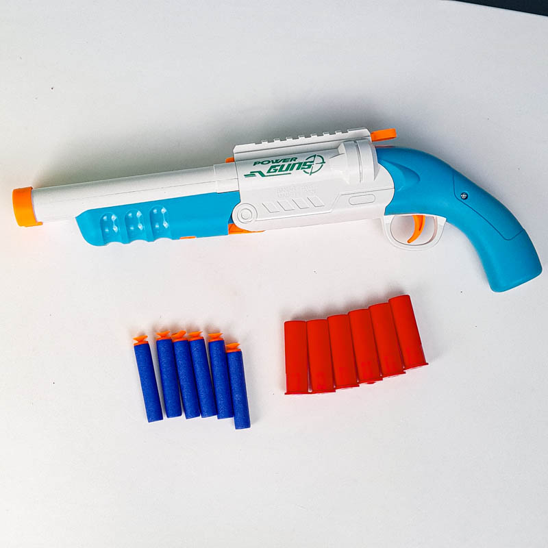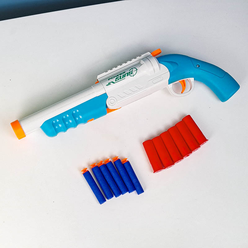 یک بازی پر از هیجان با تفنگ شاتگان پوکه پران SUPER GUN آماده انجام ماموریت هستید؟ تفنگ اسباب بازی شاتگان پوکه پران SUPER GUN با 6 عدد تیر فومی و 6 عدد پوکه کودک شما را به دنیای مهیج خیال و بازی می برد و ساعت ها او را سرگرم تفنگ بازی میکند. این تفنگ اسباب بازی، یک اسباب بازی عالی برای کودکان 6 سال به بالاست. کودکان عاشق نقش بازی و سفر در دنیای خیال هستند و با این تفنگ کودک جذاب این فرصت را به فرزاندان خود بدهید تا نهایت استفاده را از قدرت خلاقیت خود ببرند. همچنین بازی با تفنگ اسباب بازی موجب افزایش خلاقیت و مهارت های ذهنی در بچه ها میشود. این تفنگ اسباب بازی یک اسباب بازی پسرانه برای کوچولوهاییست که عاشق تفنگ اسباببازی هستند. هر بچهای دوست دارد ساعتهای بیپایانی سرگرم نقشآفرینی با دوستان خود و غوطهور شدن در بازیهای جنگی، تیراندازی به اهداف و دشمنان مختلف و... باشد. این تفنگ اسباببازی بهترین وسیله برای کودکان و نوجوانان است و هدیهای عالی برای علاقهمندان به بازیهای جنگی است. ایده آل برای شرکت در بازی های وانمودی، پارک، حیاط خلوت، داخل خانه و خارج از منزل.