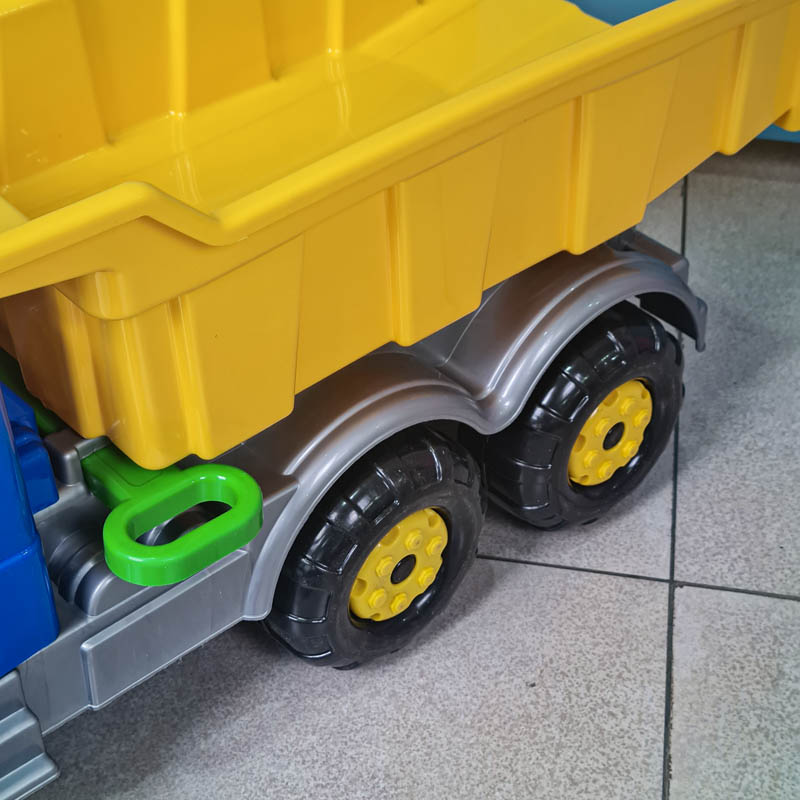 کامیون های بزرگ همیشه یک وسیله مورد توجه بچه ها هست و با دیدنش اون ها رو به هیجان میاره. این اسباب بازی کامیون تحمل وزن بالایی داره که میتونه مورد علاقه هر کودکی بشه چرا که با هر وزنی می تونن روی اون سوار بشن و حسابی باهاش دور بزن و بازی کنن یا اسباب بازی های خودشون رو قسمت بار اون قرار بدن و توی خونه باهاش دور بزنن.البته این کامیون اسباب بازی رو هم میتونن بیرون خونه ببرن و باهاش بازی کنن.این اسباب بازی همراهش یه بیل و چنگک داره که برای شن بازی و ریختن شن پشت این کامیون اسباب بازی خیلی کاربردیه.
