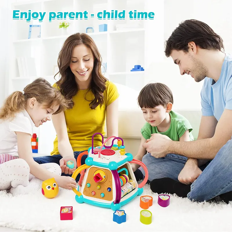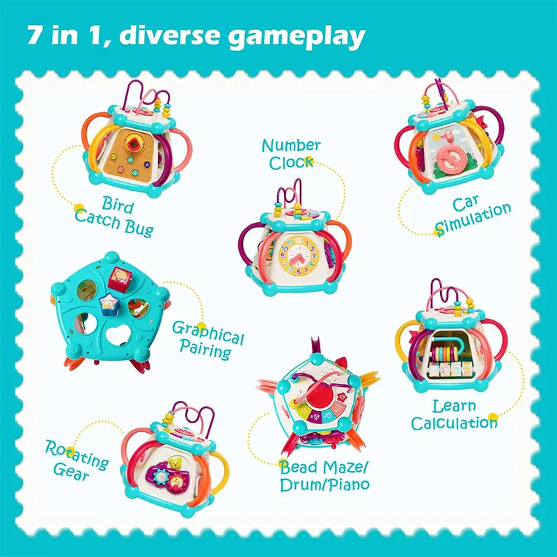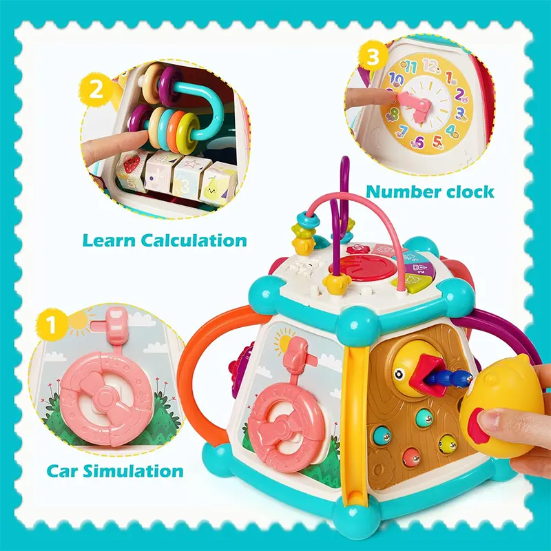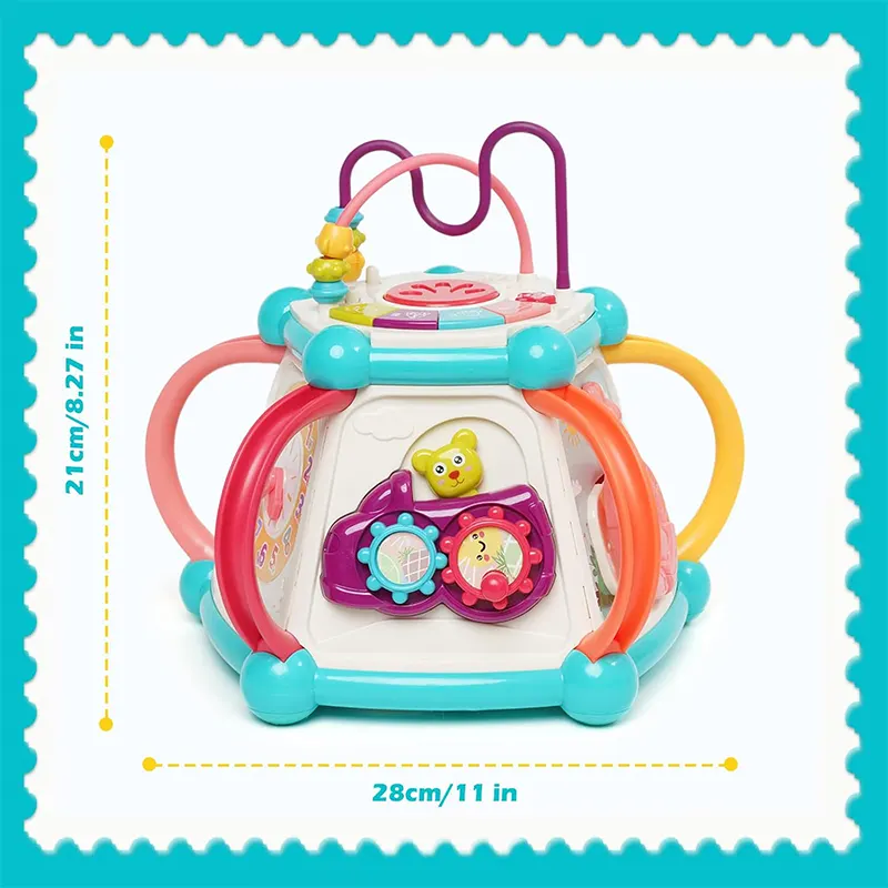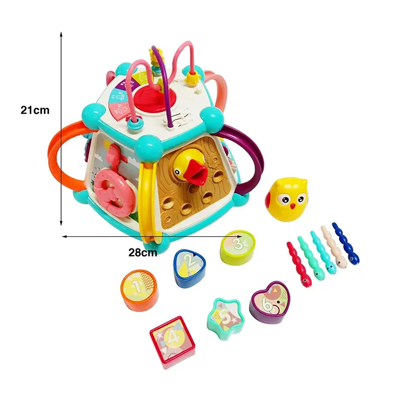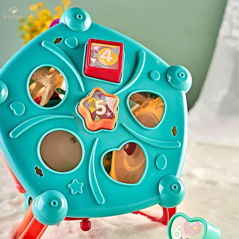 اسباب بازی هرم هوش موزیکال دارای 7 وجه بازی شامل بازی های متنوع و جالب مانند چرخ دنده، ساعت، میله و مهره، جاگذاری اشکال، فرمان، کرم و پرنده، پیانو، حلقه چرخان و ... می باشد و دارای ابعاد قطر 28 و ارتفاع 21 سانتی متر می باشد. در هر وجه این هرم هوش، بازی های مناسب کودکان 18 ماه به بالا قرار گرفته که بسیار متنوع و جذاب است و ساعت ها می تواند کودکان را سرگرم کند و مهارت های فکری و ذهنی و همچنین خلاقیت و کنجکاوی کودکان را افزایش می دهد. این هرم هوش، موزیکال و با 3 باتری قلمی 1.5 ولتی کار می کند.