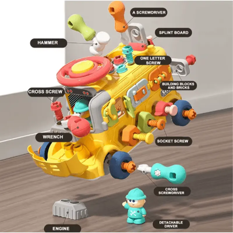 با ابزارهای واقعی و ایمن برای کودکان، مهارتها را بسازید. شامل یک پیچگوشتی، آچار و مهره های رنگی و مختلف است که برای دستان کوچک طراحی شدهاند. کنترل حرکتی ظریف و هماهنگی چشم و دست را در حین تقلید از تعمیرات دنیای واقعی توسعه دهید. این اسباب بازی مونته سوری و تعاملی به بچهها اجازه میدهد تحت راهنمایی والدین بازی کنند و به بهبود توانایی تفکر مستقل آنها کمک میکند. وقتی والدین در کنار آنها بازی کنند، این امر به بهبود ارتباط بین کودک و والد کمک میکند. این اتوبوس چندمنظوره اسباب بازیهای مهدکودکی عالی برای کودکان 3 سال به بالا است تا مشغول بمانند و مهارتهای حرکتی بزرگ، هماهنگی دست و چشم، شناخت شکل و رنگ و توانایی گرفتن را توسعه دهند. از مواد ABS بدون BPA ساخته شده است. هیچ خطر خفگی ندارد و لبههای آن کاملاً صاف است و در طول بازی به دستهای کودکان آسیب نمیزنند. عملکرد ذخیرهسازی داخلی به پرورش آگاهی کودک از ذخیرهسازی کمک میکند. درب صندوق عقب وسیله نقلیه را میتوان باز کرد و در داخل آن فضای ذخیرهسازی برای ابزارها وجود دارد. ابزارها و قطعاتی که در حال حاضر استفاده نمیشوند را میتوان در داخل قرار داد و احتمال گم شدن آنها کمتر است.