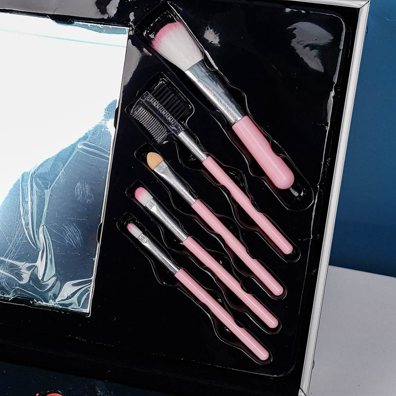 | اقلام همراه | پلت سایه، رژ لب، لاک، اکلیل، ناخن مصنوعی، ست براش، آینه، پد انگشت، سوهان |