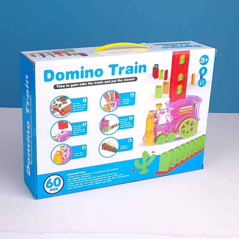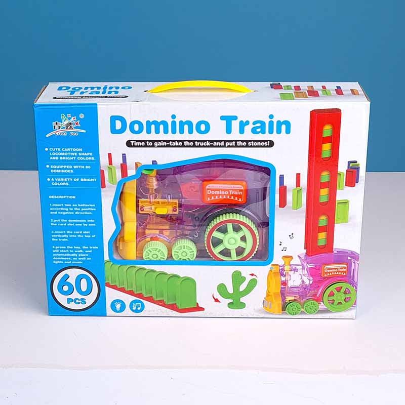 مجموعه قطار دومینو ساز از جنس پلاستیک رنگارنگ ABS با کیفیت بالا ، سالم ، بی بو ، بدون BPA و بدون هیچ گونه مواد شیمیایی مضر ساخته شده اند و مناسب برای هر سطح صافی است. لبه دومینو و قطار هیچ گونه لبه تیز و برنده ندارد تا حداکثر ایمنی را برای کودکان شما فراهم کند. کودک میتواند با توجه به توانایی های تفکر فضایی خود بر اساس رنگ، ساختن الگوها و استفاده از مهارت های حرکتی ظریف، مسیر دومینوی مورد نظر خود را بسازد. بازی با قطار دومینو ساز میتواند به تقویت عضلات دست، هماهنگی چشم و دست، تفکر منطقی و خلاقیت کودک کمک کند. این قطار دومینو چین شامل: 60 عدد بلوک دومینو، 1 عدد ساشه (کارتریج) بارگیری، 1 عدد لوکوموتیو، 1 عدد کاکتوس و استند میباشد. قطار دومینو، به 2 عدد باتری قمی «AA» نیاز دارد.وقتی کودکان با اسباب بازی قطار دومینو ساز بازی می کنند، میتوانند جهت حرکت قطار را کنترل کنند و دومینوهایی با رنگ های مختلف کار بگذارند. این بازی تخیل کودکان و توانایی های تفکر فضایی، تشخیص رنگ و توانایی عملی و غیره را تقویت می کند.