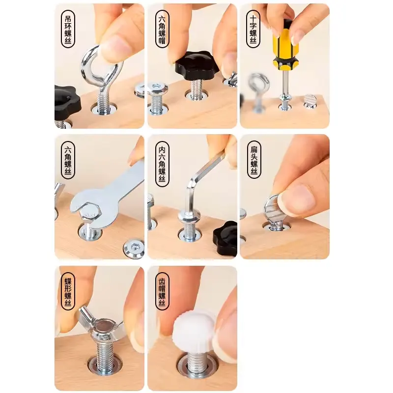 - دارای ابزارهای: پین چوبی، آچار آلن، پیچ گوشتی، آچار، 8 مدل مهره متفاوت