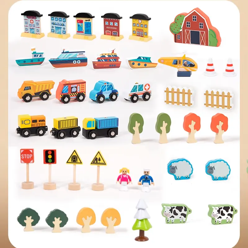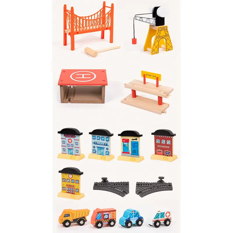 - شامل پل، ماکت درخت، علائم راهنمایی، جرثقیل، آدمک، خانه، برج مراقبت، هواپیما، قایق، قطار و...