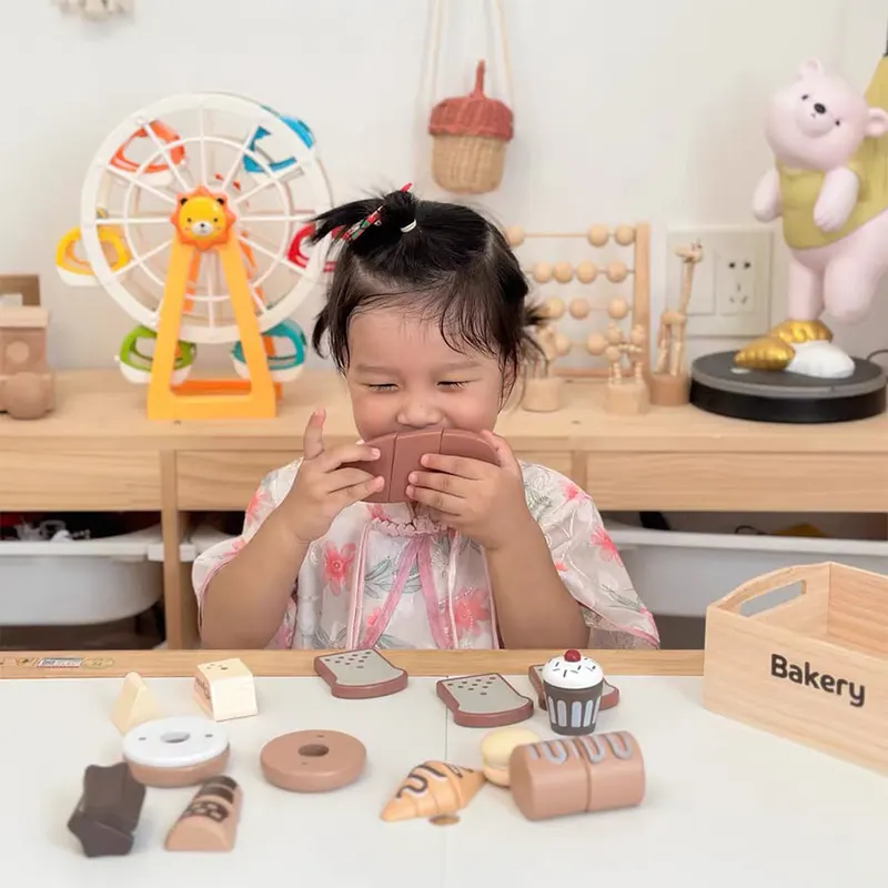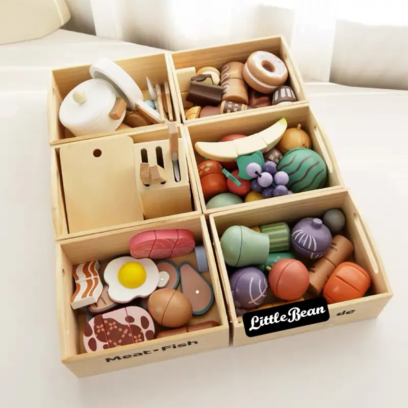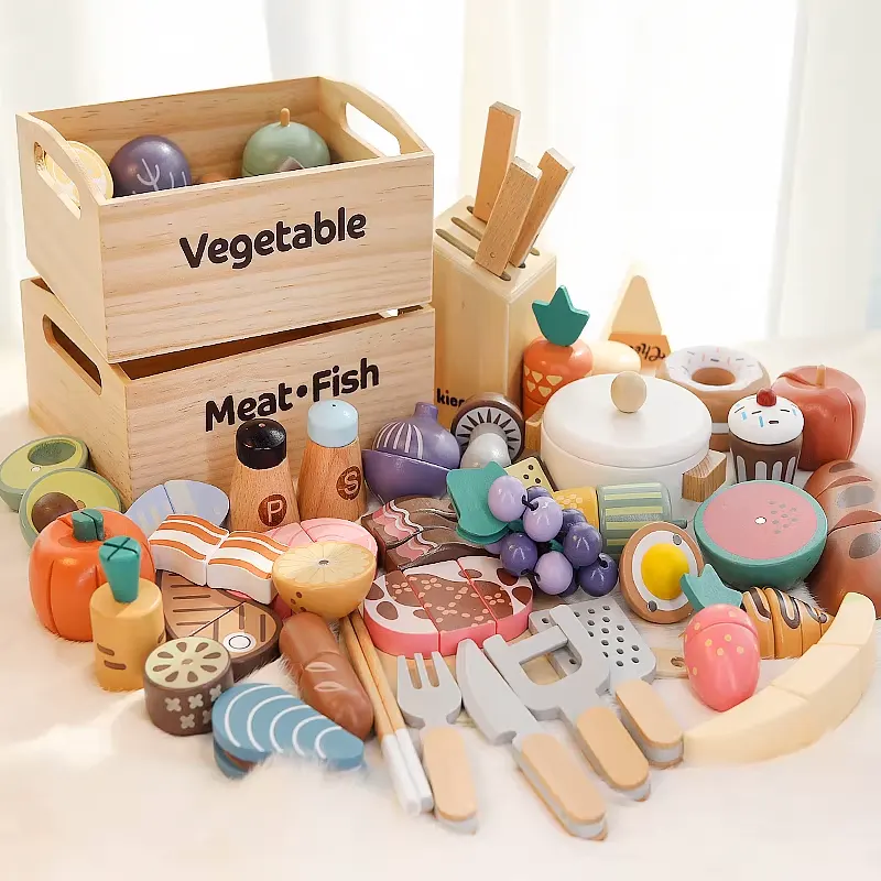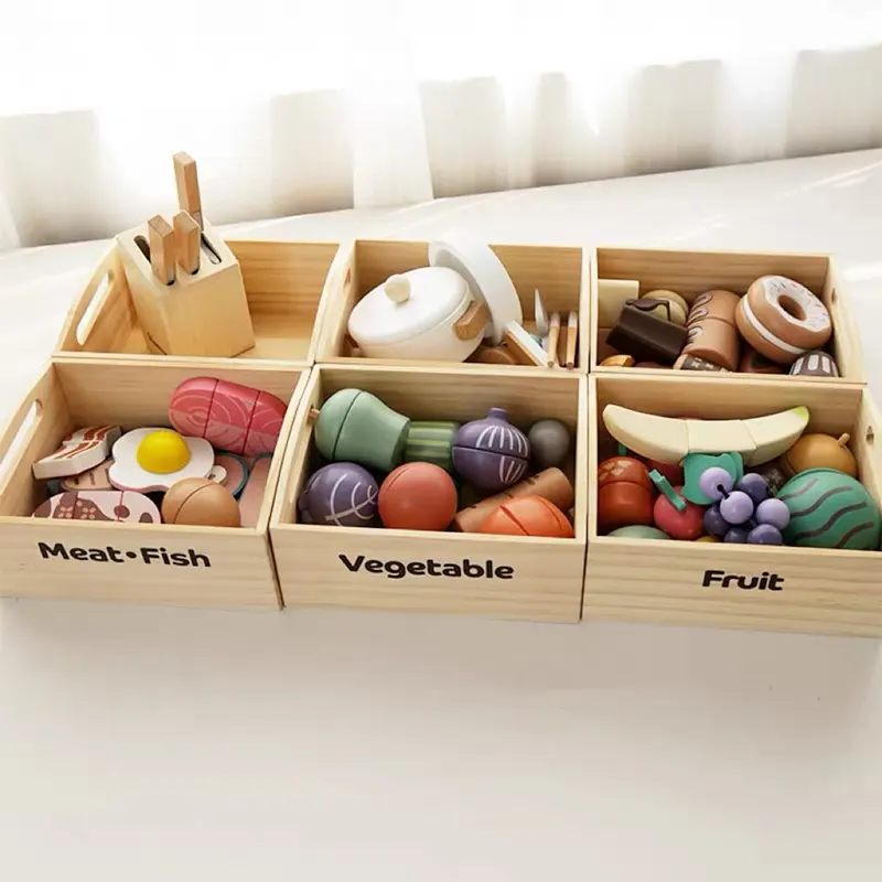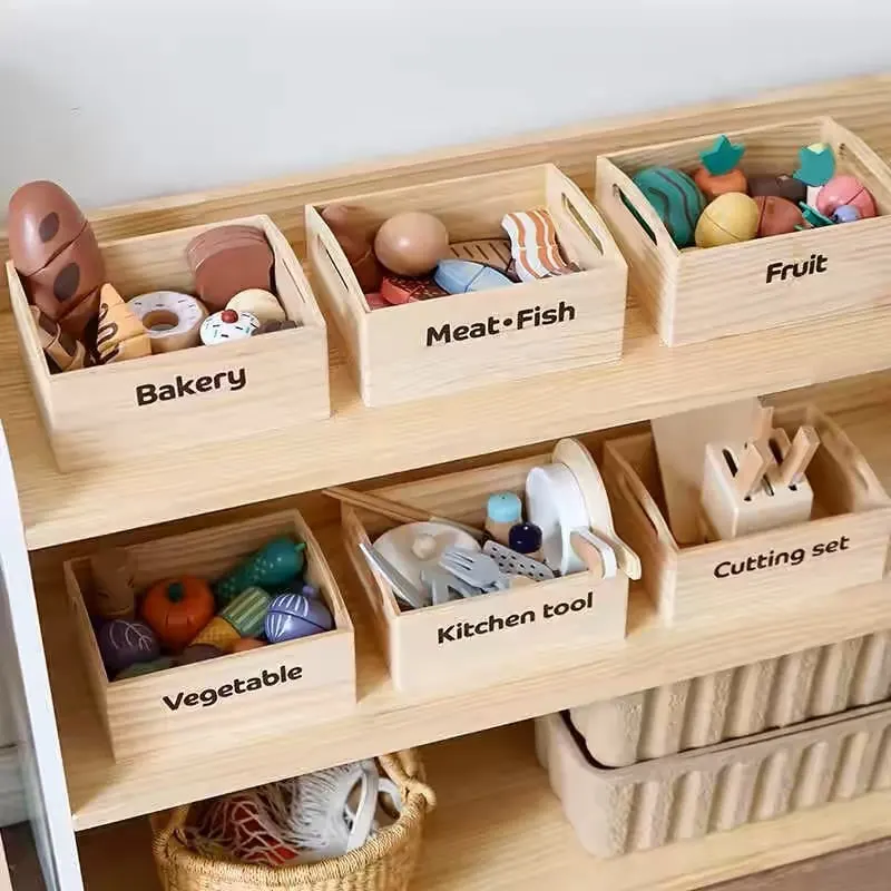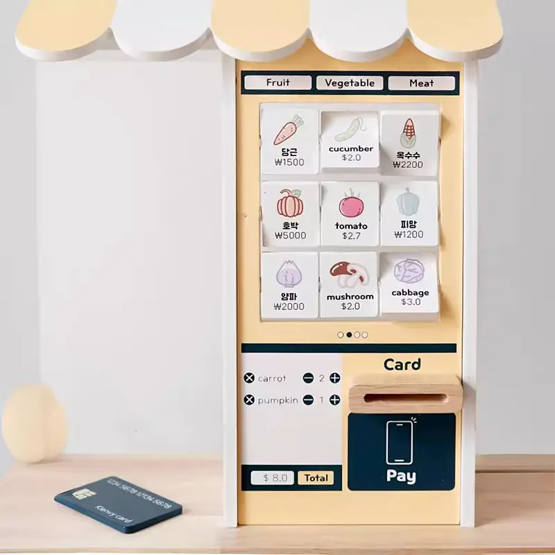 ویژگی اسباب بازی استند سوپرمارکت چوبی با لوازم: