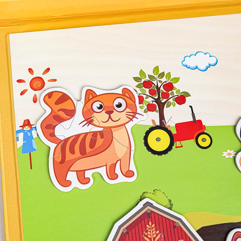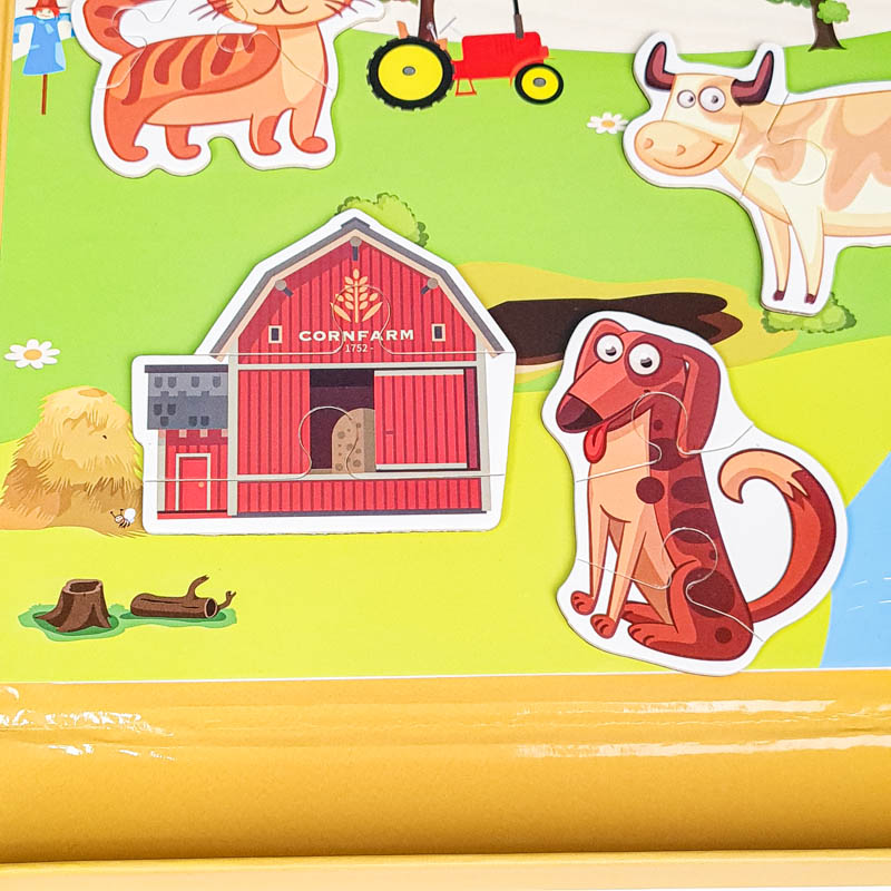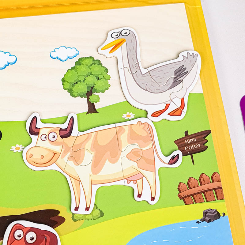 این اسباببازی مغناطیسی با آهنربایی که در پشت آن هست می تونه به روکش آهنی، تختههای طراحی مغناطیسی یا حتی یخچال وصل بشه همینطور از بین نمیره یا پاره نمیشه. اندازه قطعات پازل برای دست های کودکان مناسبه، به طوری که بچه ها به راحتی می تونند اونو نگه دارند اما به دلیل داشتن قطعات کوچک برای کودکان زیر 3 سال اصلا مناسب نیست. این پازل مگنتی به هماهنگی چشم و دست کودک، تشخیص رنگ، مهارت های حرکتی ظریف، مهارت های ادراک بصری، مهارت های حل مسئله کودک کمک میکند. همچنین در دار بودن این اسباب بازی یکی دیگه از ویژگی های مثبت این اسباب بازی است. بچه ها میتونن بعد از بازی، وسایل رو داخل محفظه چوبی قرار بدن تا از گم شدن قطعات این پازل مغناطیسی جلوگیری کنن. با کمک این پازل آموزشی کودکان می تونند الگو برداری از مدل را بیاموزند و با کمک کارت های راهنما حیوانات مزرعه مختلف را کامل کنند. کودکان می توانند با استفاده از خلاقیت و نوآوری خود داستان سرایی کنند و داستان های مختلف برای هر حیوان تجسم کنند.