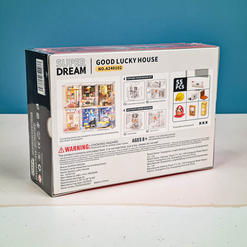این اسباب بازی جدید از جنس پلاستیک با کیفیت ساخته شده است و قطعات آن به راحتی در هم چفت میشود این سازه دارای اکسسوری های ریز برای چیدمان اتاق نشیمن می باشد. این خانه مینیاتوری دارای 55 قطعه برای ساخت است به همین دلیل و به دلیل داشتن قطعات ریز برای بچه های بالا 8 سال مناسب می باشد. همچنین این اسباب بازی دارای جای باطری و لوازمی برای روشن کردن چراغ های ال ای دی می باشد. این مجموعه یک راه بسیار خوب برای تشویق کودکان به خلاقیت است و به بچه این امکان را می دهد تا خود را در نقش یک معمار و طراح ببینند.