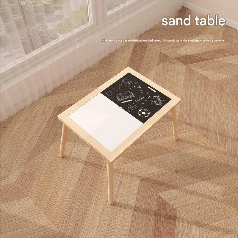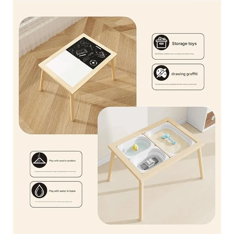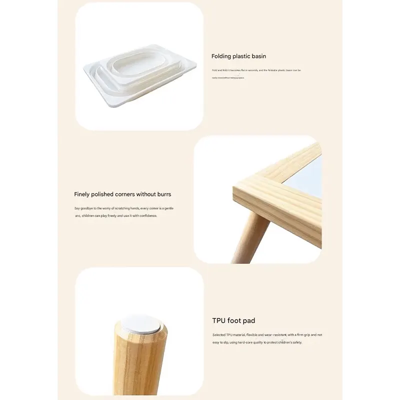 از این میز چوبی کودک میتوان به شکل های مختلف استفاده کرد. برای اکثر کودکان فقط ریختن و یا جابجایی وسایل از یک مکان به مکان دیگر کافی است، بنابراین آنها می توانند فقط با کاسه ها و اسکوپ ها سرگرم شوند.این میز بازی می تواند به بچه ها کمک کند تا مهارت های حرکتی ظریف را با تمرین کارهایی از این دست بیاموزند.