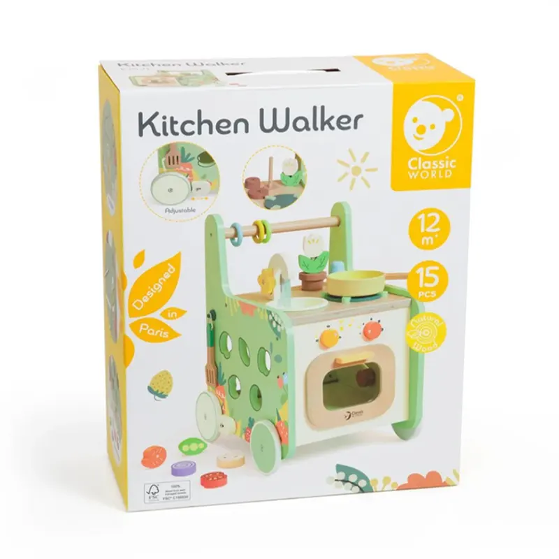 واکر آشپزخانه چوبی کودک کلاسیک ورلد Classic World Kitchen Walker هماهنگی چشم و دست، تمرکز و صبر کودکان را بهبود میبخشد و همچنین آنها را تشویق میکند که به طور استراتژیک فکر کنند. واکر آشپزخانه چوبی کودک کلاسیک ورلد Classic World Kitchen Walker از چوب جامد طبیعی با کیفیت بالا ساخته شدهاند و با رنگ مبتنی بر آب سازگار با محیط زیست پوشانده شدهاند.