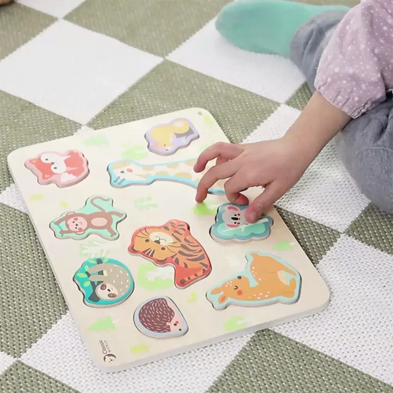 - دارای 10 قطعه (تخته چوبی پازل، جوجه تیغی، تنبل، میمون، زرافه، سنجاب، آهو، روباه، کوآلا و ببر)
