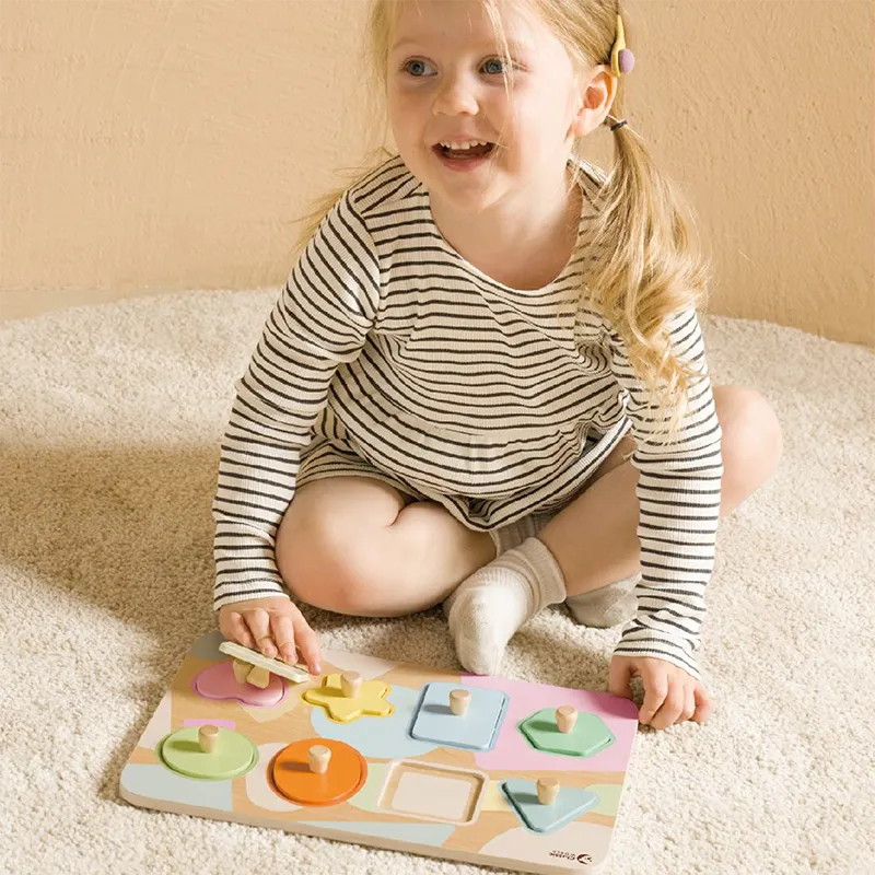 با پازل چوبی هندسه کلاسیک ورد Classic World Geometry Puzzle ، بچهها اشکال هندسی و رنگهای مختلف رو یاد میگیرن. این پازل مهارت حل مسئله، هماهنگی چشمها و دستهای کوچولوها رو تقویت میکنه. این پازل چوبی مناسب گرو سنی 2 سال به بالا است