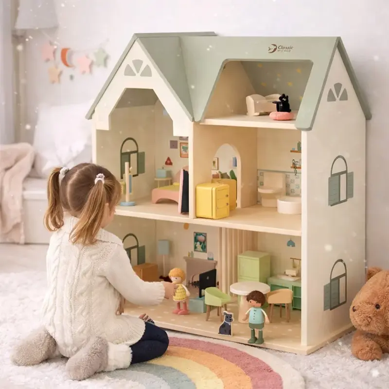 - این خانه عروسک چوبی برای کودکان بالای 2 سال مناسبه