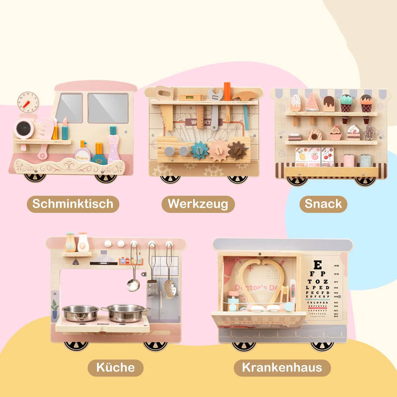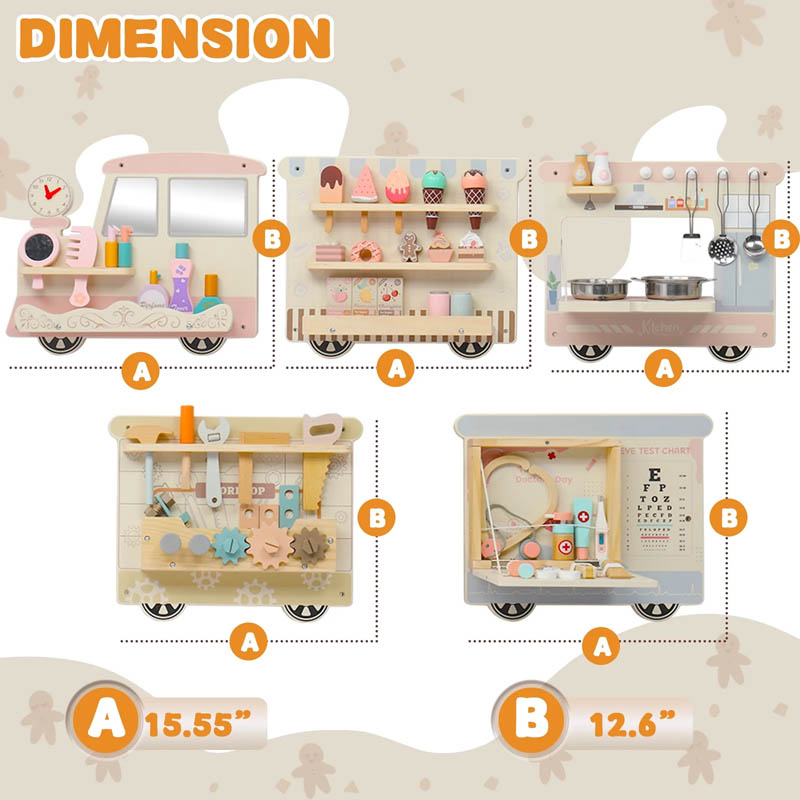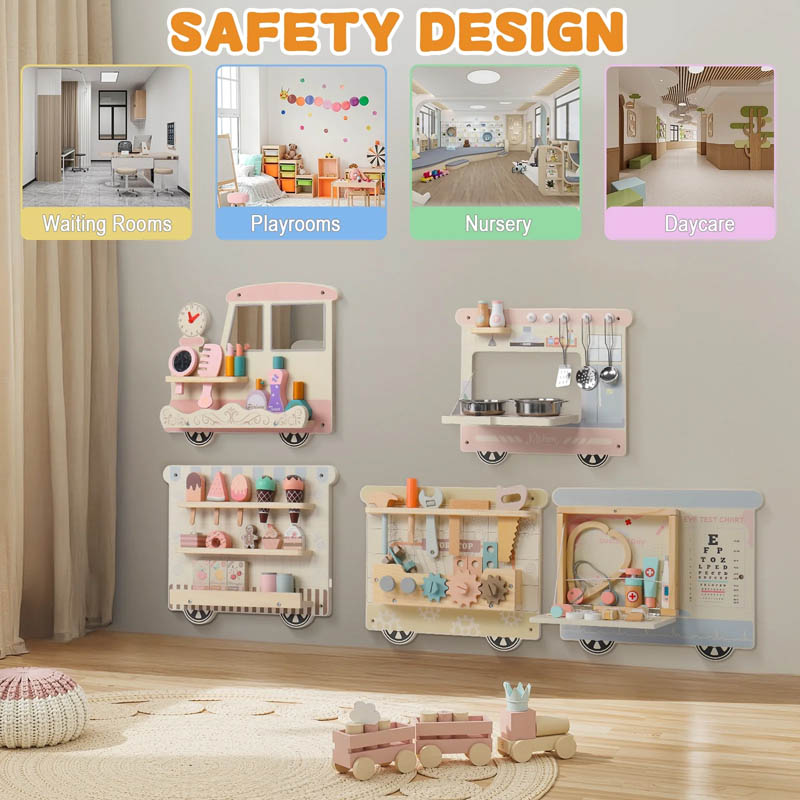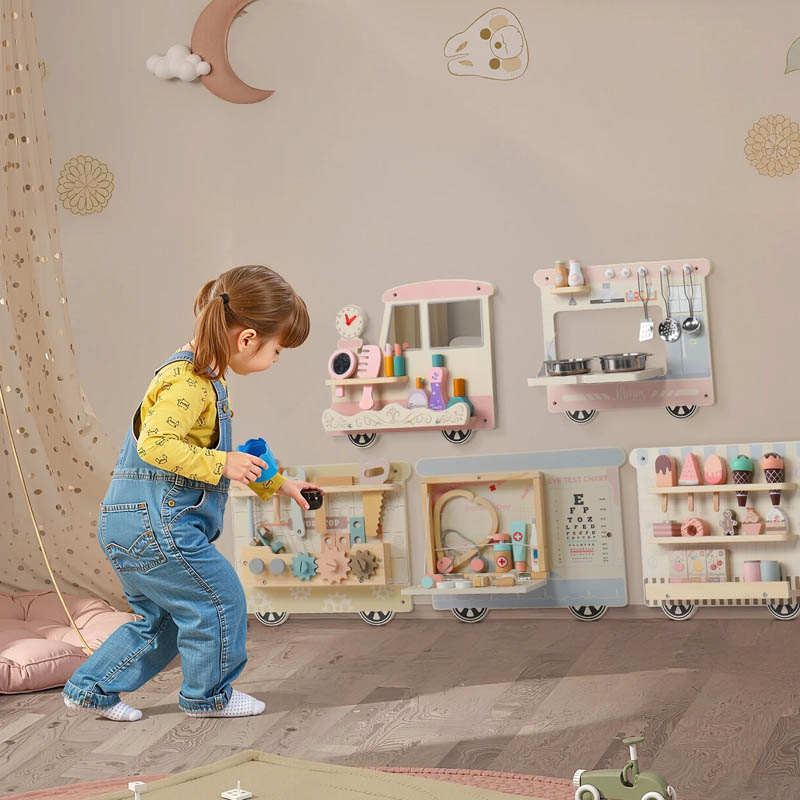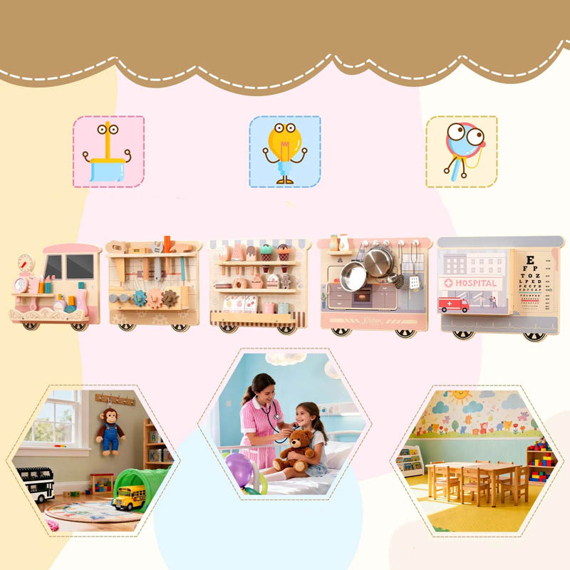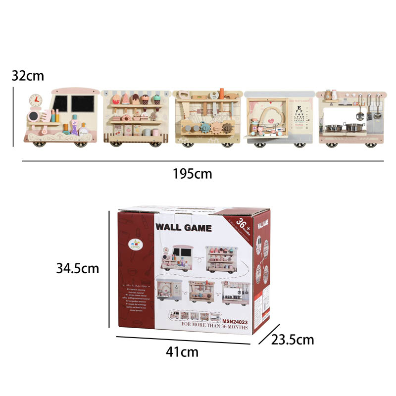 اسباب بازی چوبی ایستگاه مشاغل مدل قطار مهارت های مختلف مثل حس دیداری، شنوایی، لامسه، هماهنگی چشم و دست، تخیل، مهارت دست ورزی، خلاقیت، حل مسئله، دقت و توجه، ادراک فضایی و زمانی، بیان هیجانات، شناخت احساسات، آداب اجتماعی، تقویت زبان، تقویت مهارتهای ظریف، تقویت مهارتهای زبانشناختی، تفکر خلاق، تفکر انتزاعی، افزایش عزت نفس، درک دیدگاههای دیگران و نهایتاً سرگرمی شخصی و یادگیری مهارتها، تعامل و... را در کودک تقویت میکند. این اسباب بازی چوبی ایستگاه مشاغل مدل قطار در تمام مراکز بازی کودک و در فضاهایی مثل: مهد کودک ها، خانه بازی ها، اتاق انتظار بیمارستان ها، کلینیک، مطب ها، هتل ها، پاساژ و... قابل نصب و اجرا است.