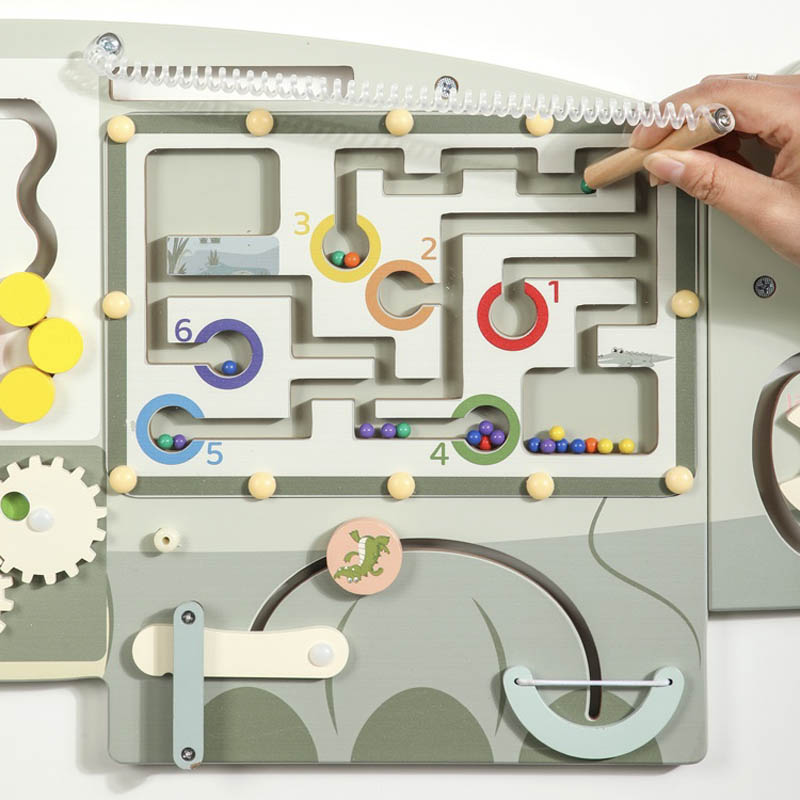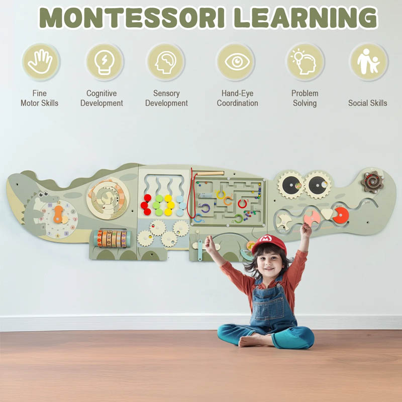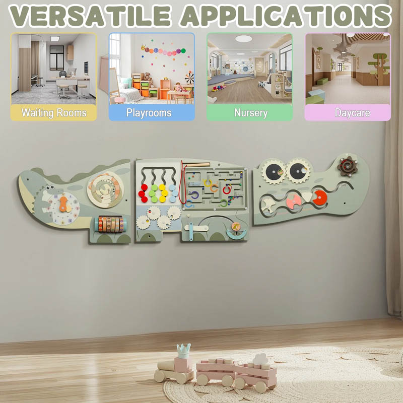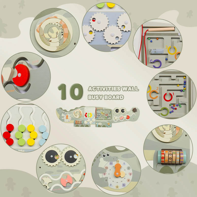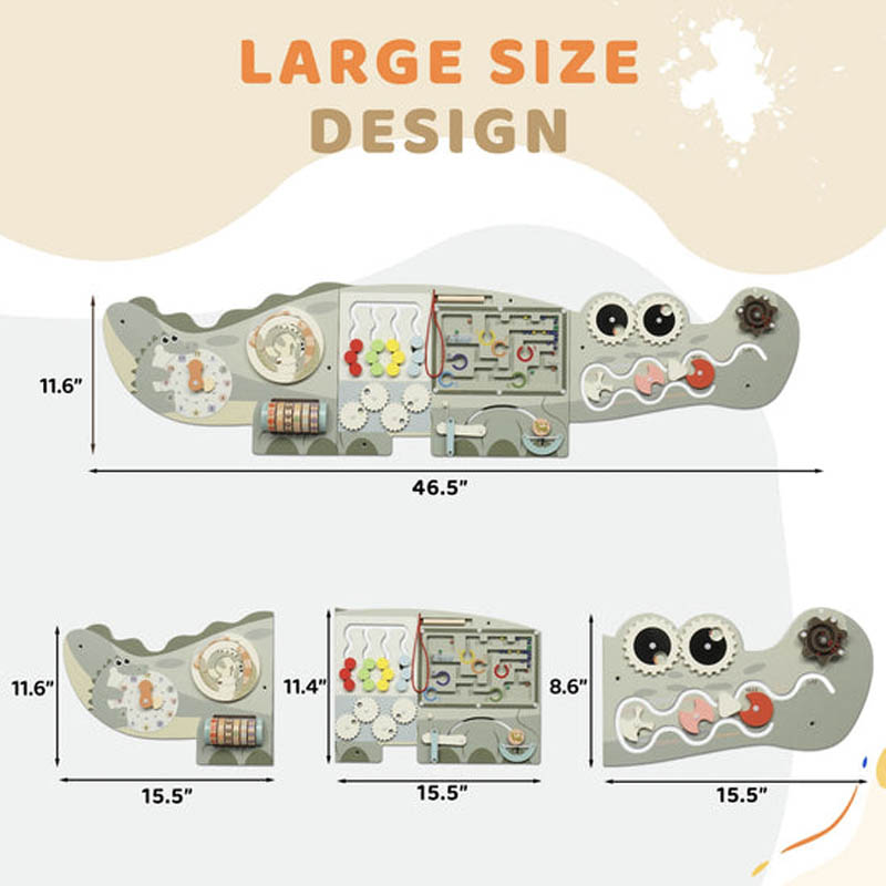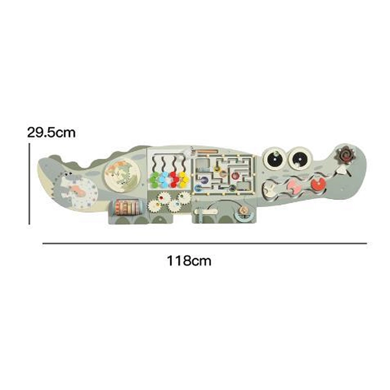 دنبال یک بازی هستین که برای کودکانتون مفید باشه؟ میخواهید مهارت های کودکتون رو تقویت کنین؟ پس بهتره بازی کودکانه بیزی بورد رو امتحان کنید. تخته هوش بیزی برد یک اسباب بازی آموزشی برای کودکان بالای 3 ساله. این محصول برای یادگیری مهارت های مختلف به کودکان مناسبه. تخته هوش بیزی برد مدل کروکودیل ترکیبی از یک صفحه چوبی در ابعاد طول 118 ارتفاع 29.5 سانتیمتر و انواع بازی ها و ابزارهای متفاوت است که تجربه یک بازی جذاب را برای کودک فراهم میکند. کودکان حین بازی با تخته هوش با حساسات مختلف و چگونگی کارکرد اشیا در زندگی روزمره آشنا میشوند.