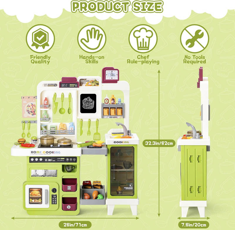ویژگی آشپزخانه کودک بزرگ 75 تکه رنگ سبز