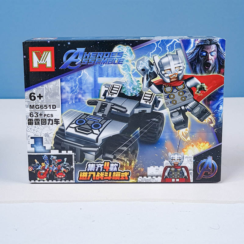 اسباب بازی لگو ثور 63 تکه کودک را به ماجراجویی با ثور و مقابله با افراد شرور و خرابکار دعوت می کند، کودک با این لگو 63 تکه می تواند ثور و ماشین او را بسازد و به ماجراجویی در دنیای خیال و ابر قهرمانان بپردازد. اسباب بازی لگو بتمن، شامل 63 تکه برای ساخت این شخصیت و ماشینش است که یکی از بهترین هدیه ها برای کودکان و کلکسیونرهاست. این محصول برای کودکان و نوجوانان 6 سال به بالا مناسب می باشد. این لگو از جنس پلاستیک با کیفیت است که به راحتی روی هم چفت میشوند.