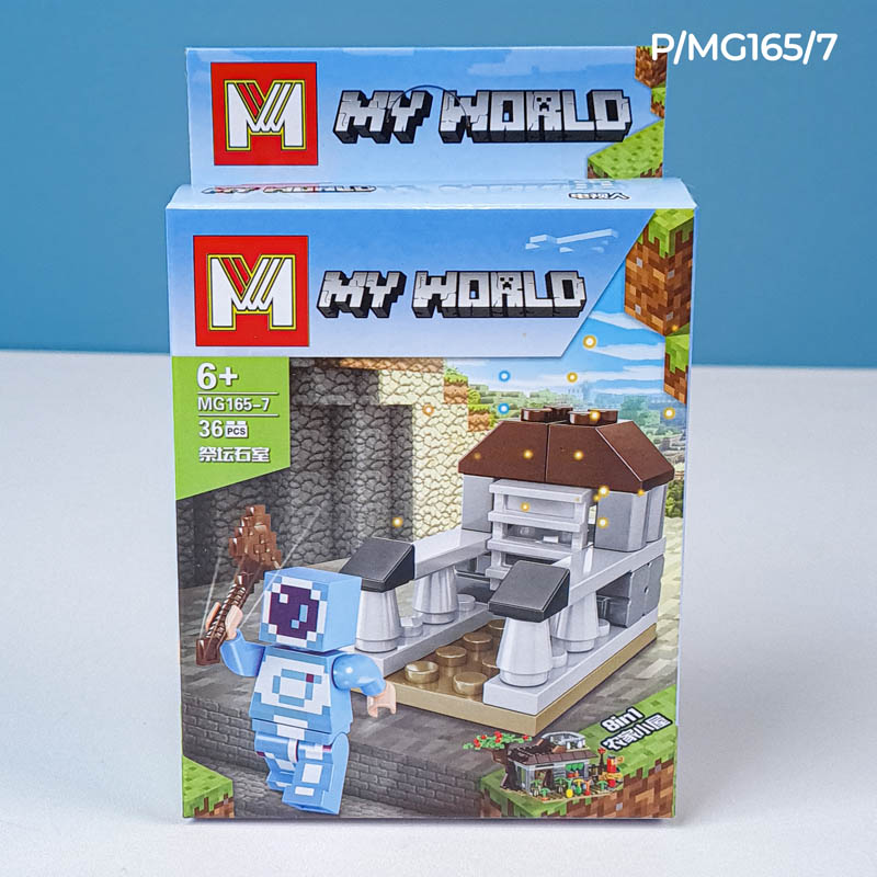 - شامل لگو مینی فیگور شخصیت ماینکرفت، لند و یک اسلحه ماینکرفتی