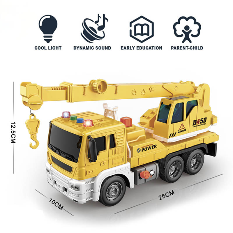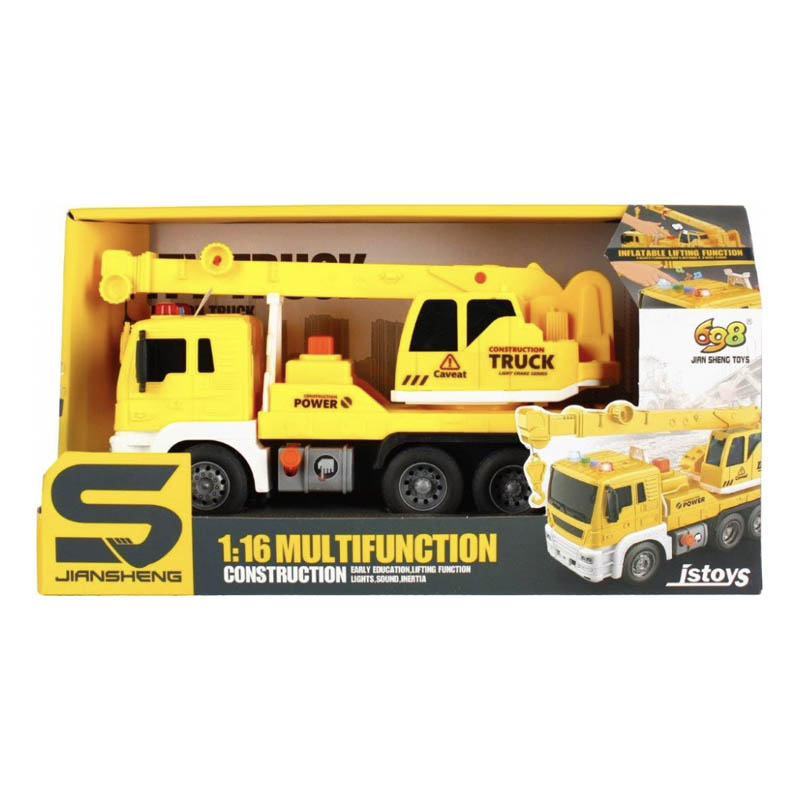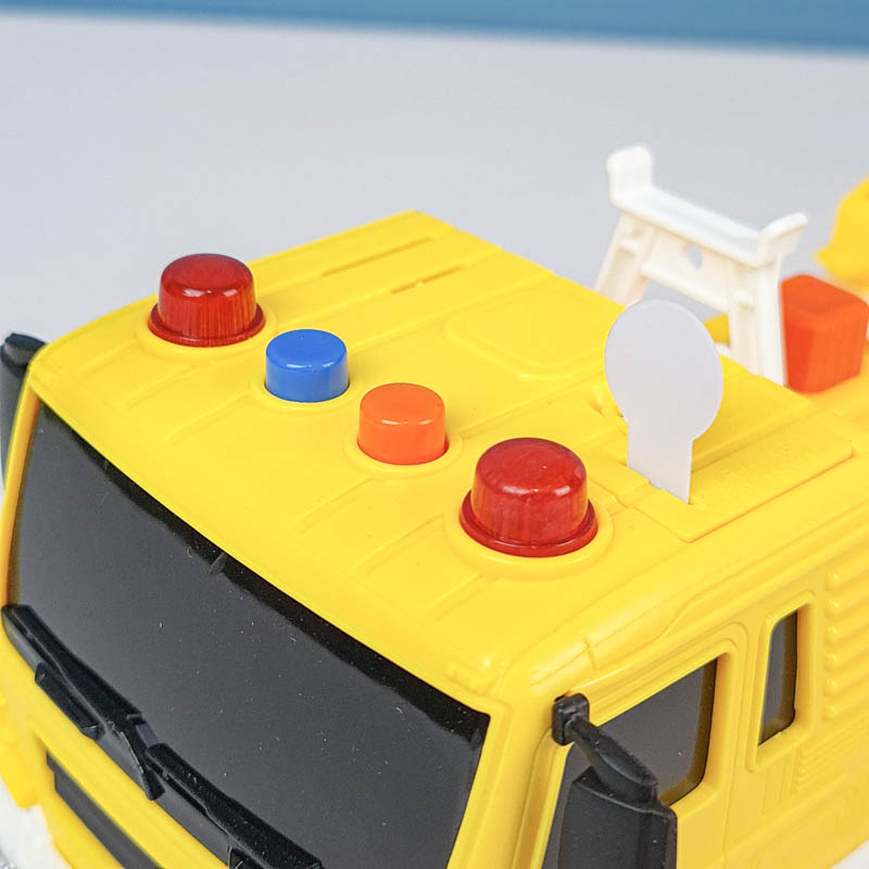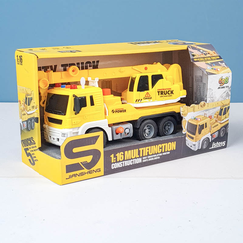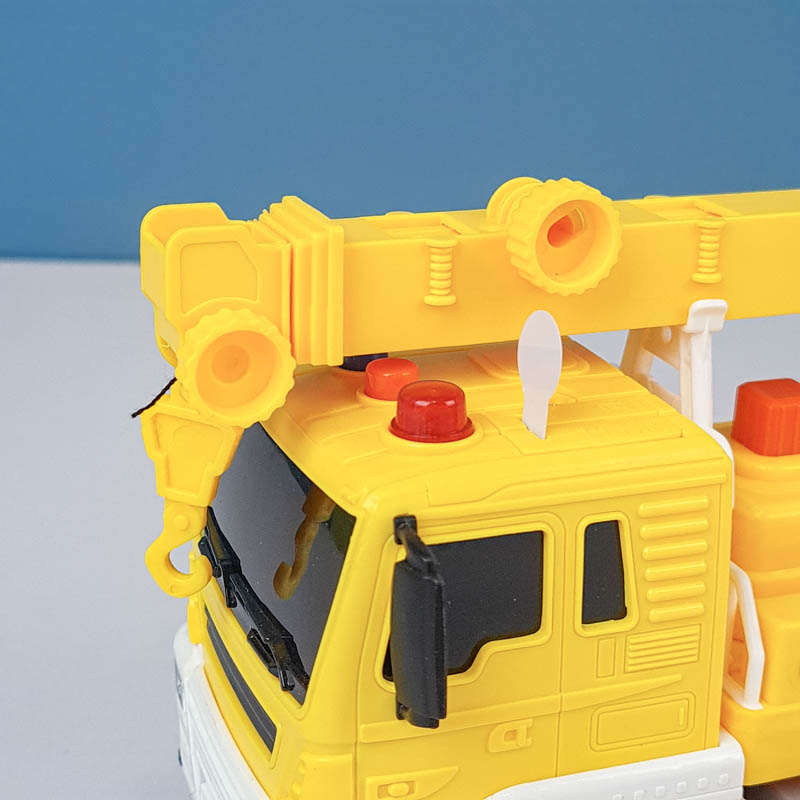 اسباب بازی ماشین جرثقیل با کیفیت عالی و رنگ جذاب میتونه بهترین هدیه برای ماشین بازی کودکان باشه. ماشین اسباب بازی رو به سمت عقب و یا جلو هل دهید تا با سرعت به سمت جلو و عقب حرکت کند. قسمت جرثقیل این کامیون اسباب بازی جرثقیل، تاشو و 360 درجه می چرخرد. این ماشین اسباب بازی پلاستیکی کوچک مقاوم و دارای جزئیات جذاب و دقیق می باشد جلوه های نوری و صوتی مانند صدای استارت، صدای حرکت بازو، صدای بوق این ماشین را به یک بیل مکانیکی واقعی تبدیل کرده است. در کنار این جرثقیل اهرمی قرار دارد که با چرخش آن بازوی بازو جرثقیل به جلو و عقب حرکت میکند و همچنین با اهرم دیگر طول طناب جرثقیل کم و زیاد میشود. این کامیون راهسازی دارای دکمه پمپی برای بالا بردن بازوی جرثقیل است و همچنین برای برگرداندن به حالت اولیه اهرمی دارد که با فشار دادن آن بازو به سمت پایین حرکت میکند.