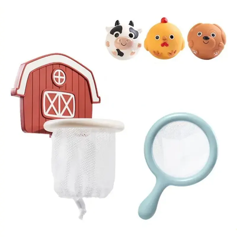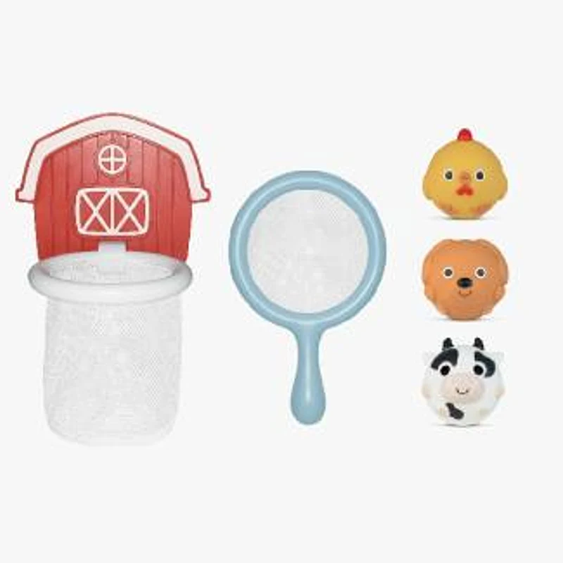 | اقلام همراه | 3 اسباب بازی پلاستیکی حمام حیوانات مزرعه، حلقه پرتاب مزرعه و یک تور ماهیگیری |