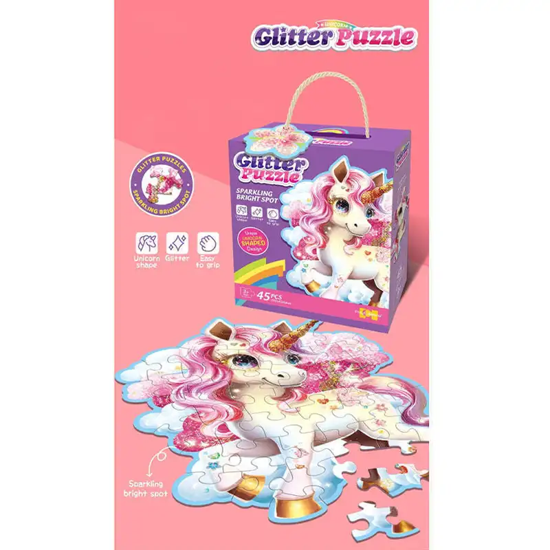 پازل کودک 45 تکه مدل یونیکورن GLITTER PUZZLE جادویی
