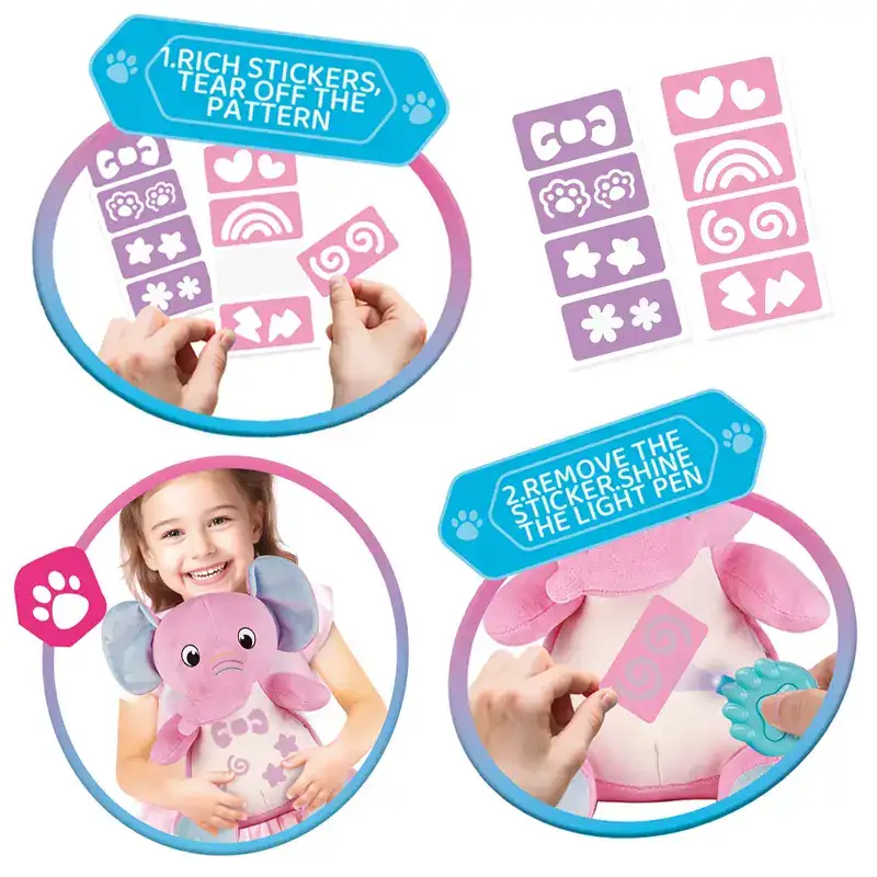 عروسک پولیشی LED دار طرح فیل یک عروسک پولیشی نرم و بامزه است که یک پنجه led به همراه دارد که به کمک آن میتوان روی شکم این فیل بامزه نقاشی کشید و پس از مدتی محو شود. این عروسک پولیشی با ابعاد طول 16 عمق 14 ارتفاع 25.5 سانتی متر مناسب کودکان 3 سال به بالاست