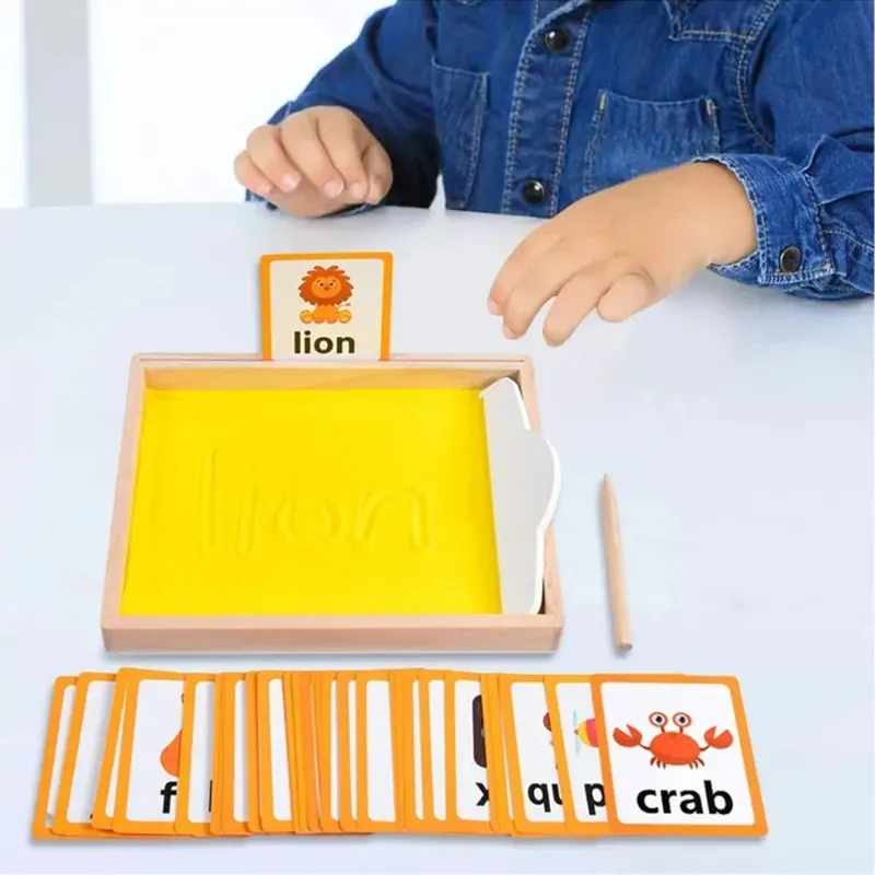 با کمک این تخته شنی روی شن بکش و یادبگیر! بچه ها علاقه ی زیادی به شن بازی و نقاشی دارند. تخته شنی وسیله ای آموزشی است که با کمک 36 عدد کارت دو رو اعداد، حروف الفبا و املای درست کلمات انگلیسی را به کودکانتان یاد میدهد. این تخته دارای کارت دو رو بوده که یک طرف املای کلمات و طرف دیگر علاوه بر تصاویر و املای کلمات اعداد و حروف الفبا انگلیسی را و نحوه املای آنها را به کودکان آموزش میدهد.این تخته شن بازی به رشد حسی کودک کمک میکند. کودکان عاشق این تخته چوبی می شوند چرا که می توانند بدون نیاز به دیگران و به صورت کاملا مستقل با آن بازی کنند و از آن استفاده کنند.