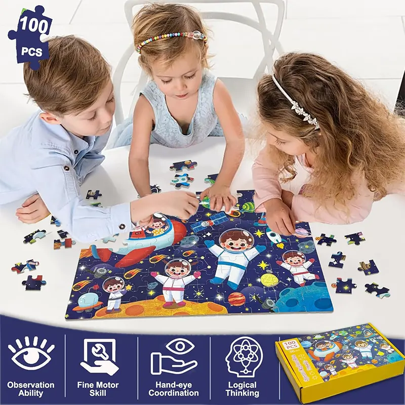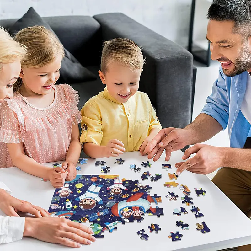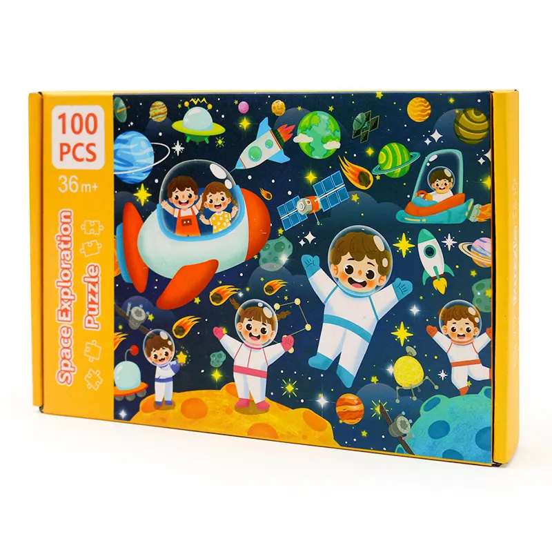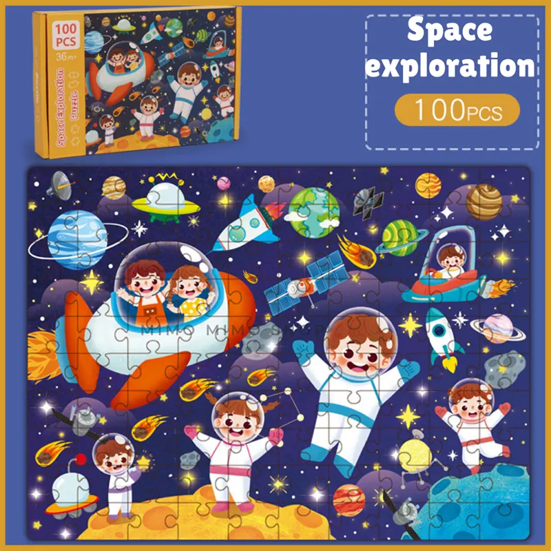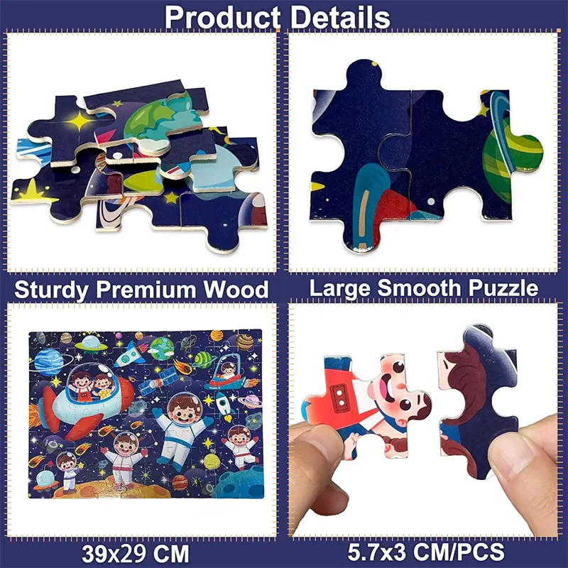پازل 100 تکه مدل فضانورد، یک انتخاب ایده آل برای افزایش مهارت های ذهنی و بالابردن سطح تمرکز کودک شما میباشد. پازل کودک چوبی شامل تصاویر چند فضانورد بامزه درون اعماق آسمان هاست. این پازل دارای صفحه راهنما است و از جنس چوب با کیفیت برای +3 سال است.