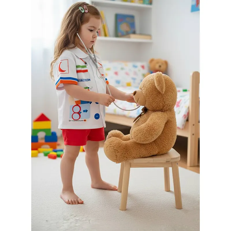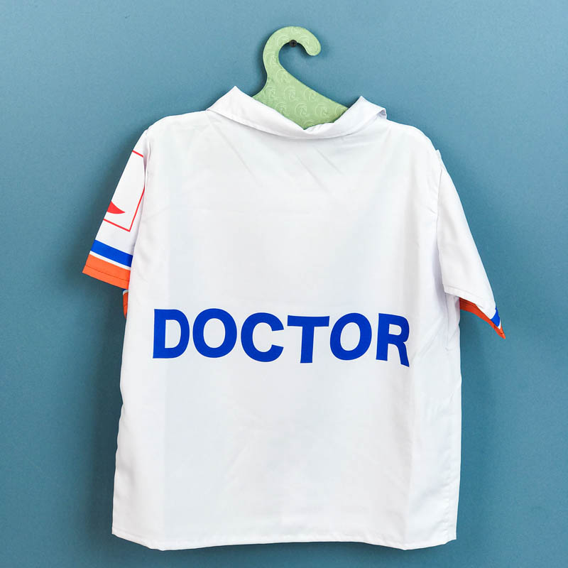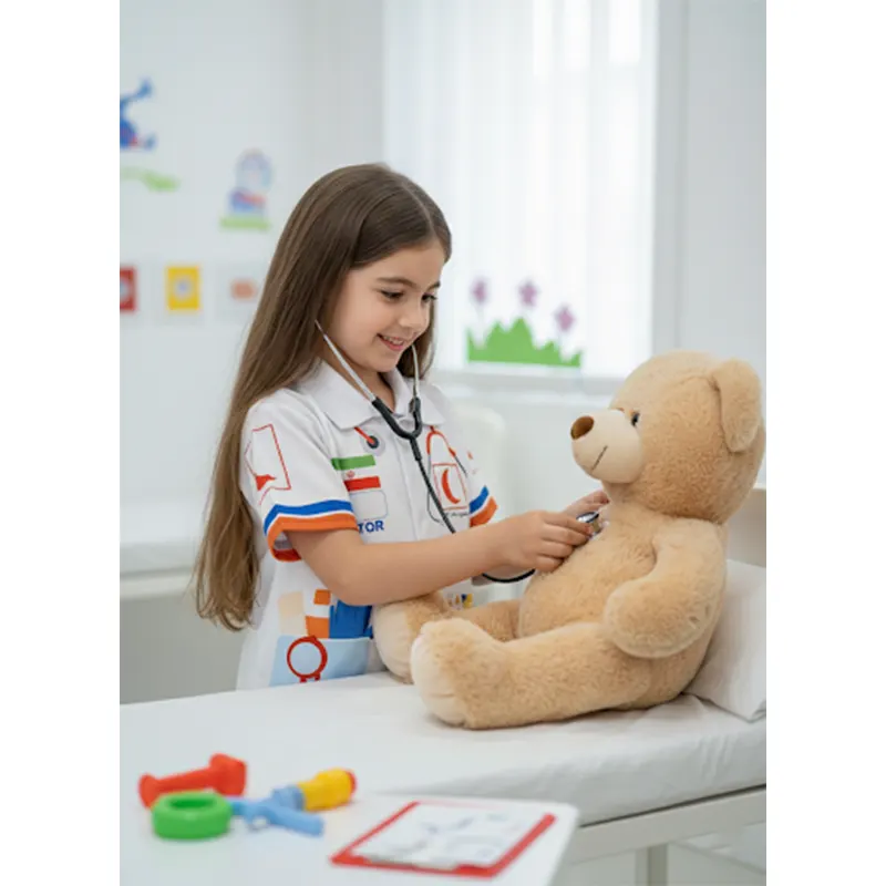 ست لباس مشاغل کودک دکتر یک مدل از انواع لباس نمایش کودک می باشد و برای نقش بازی کودک بسیار سرگرم کننده است. کودک با پوشیدن انواع لباس نمایش در دنیای نقش بازی غرق میشود و از این طریق بسیاری از مهارت های زندگی را تمرین میکند. این لباس مشاغل کودک دکتر برای نقش بازی کودکان بسیار ایده ال است و بازی با آن موجب افزایش خلاقیت در کودکان می شود. بازیهای وانمودی، آن دسته از بازیهایی هستند که کودکان در دنیای خیالی خود نقش یک بزرگسال را بازی میکنند. بازیهای نمایشی علاوه بر اینکه کودکان را سرگرم میکنند، آنها را برای بسیاری از مهارتهای ضروری در زندگی آماده میسازند.