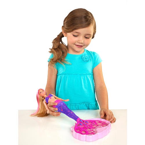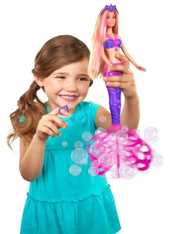 با ريختن محلول در ظرف و قرار دادن دم پري دريايي در آن و سپس كشيدن حلقه پشت ،دم باربي شروع به چرخيدن مي كند و حباب هاي ايجاد شده در هوا پخش خواهند شد...ايده ال براي سرگرم كردن كودكان