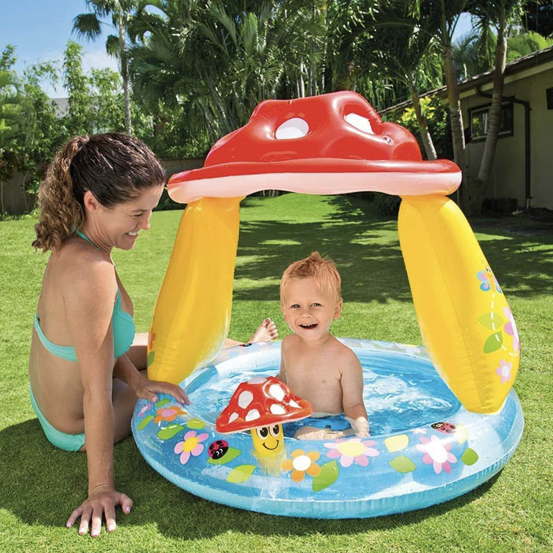 Intex 57114 Mushroom Baby Pool - استخر بادی قارچی Intex محصولی فوق العاده برای آب بازی کودکان است که دارای سایبان برای محافظت کودک از نور آفتاب می باشد.