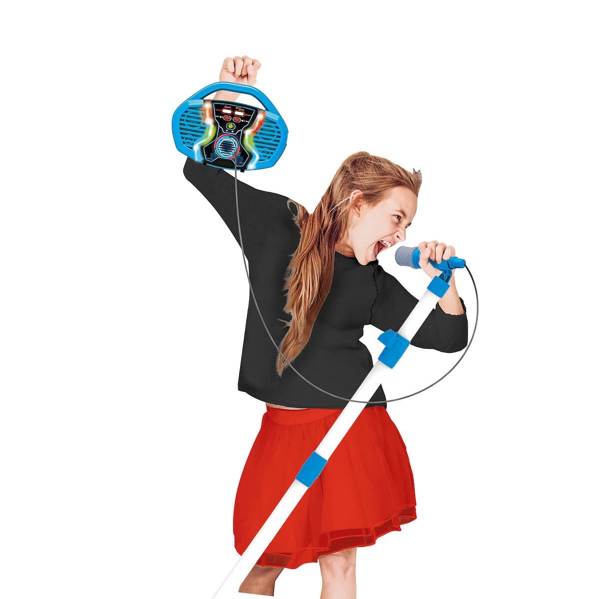 میکروفون اسباب بازی موزیکال دارای پایه ای که بچه ها می توانند موزیک پلیر میکروفن را بر روی آن نصب کنند کنسرتی مهیج برای دوستانشان برگزار کنند و یا اینکه بوم باکس را در دست خود بگیرند و هرجایی که دوست دارند از آن استفاده کنند. میکروفون موزیکال وین فان دارای دکمه خاموش روشن و دمو و جلوه های صوتی جالب و جذاب می باشد.همچنین بچه ها می توانند صدای موسیقی را کم و یا زیاد کنند.